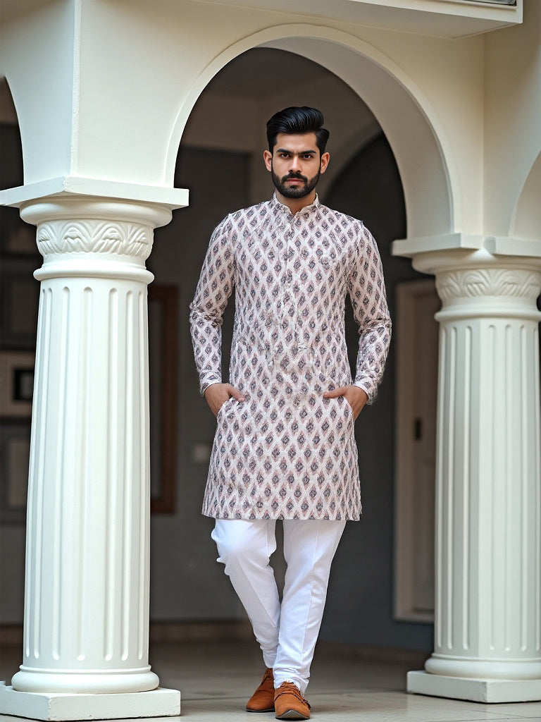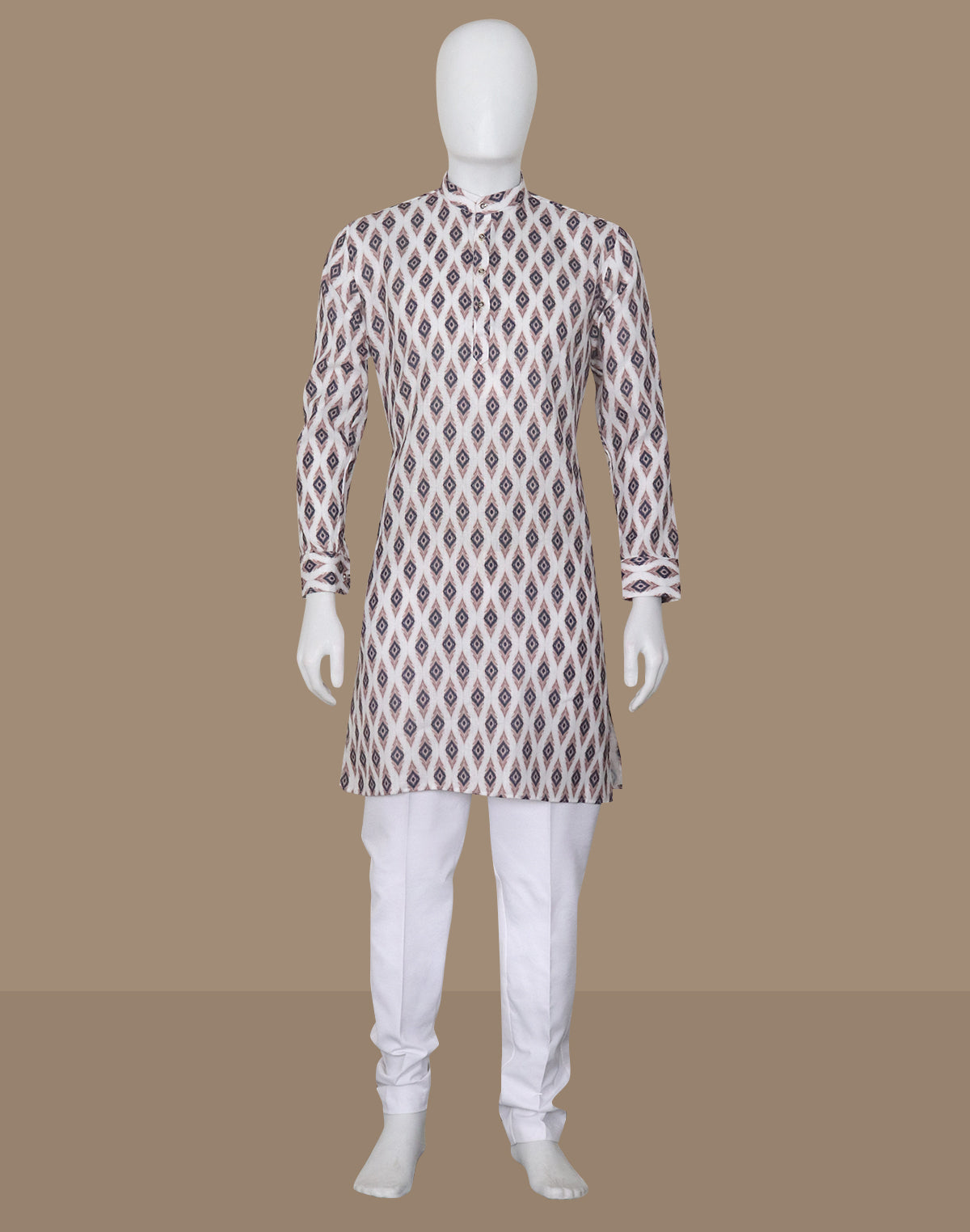Beautyful Ikat Print Cotton Kurta combines traditional design with modern style. The subtle Ikat print adds a unique touch, making it versatile for both casual and office wear. Made from soft cotton, it ensures comfort and breathability throughout the day.
