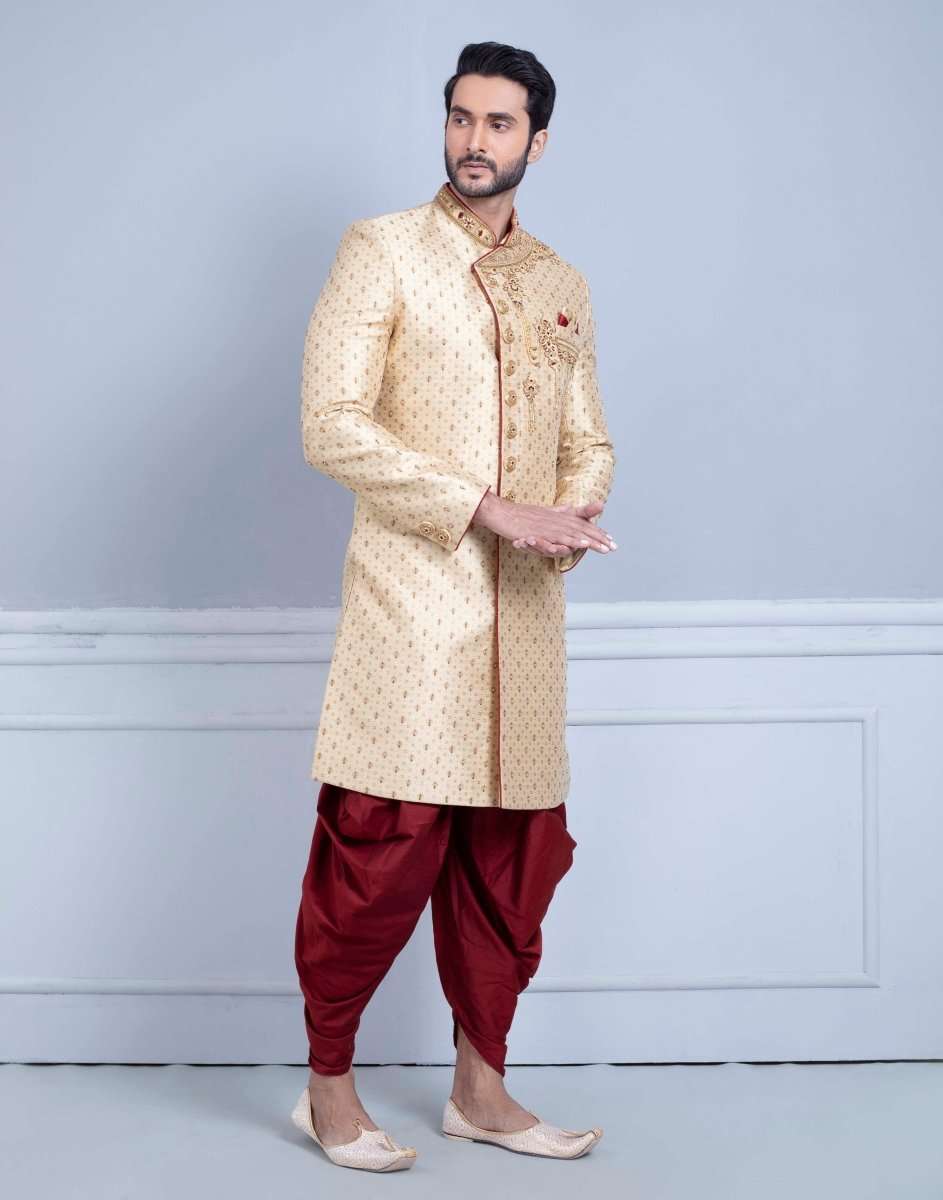 | WORK: Self Design | GARMENT TYPE: Wedding Sherwani Set |