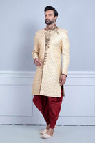Gold Self Design Zardosi Work Sherwani For Wedding
