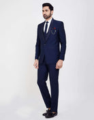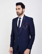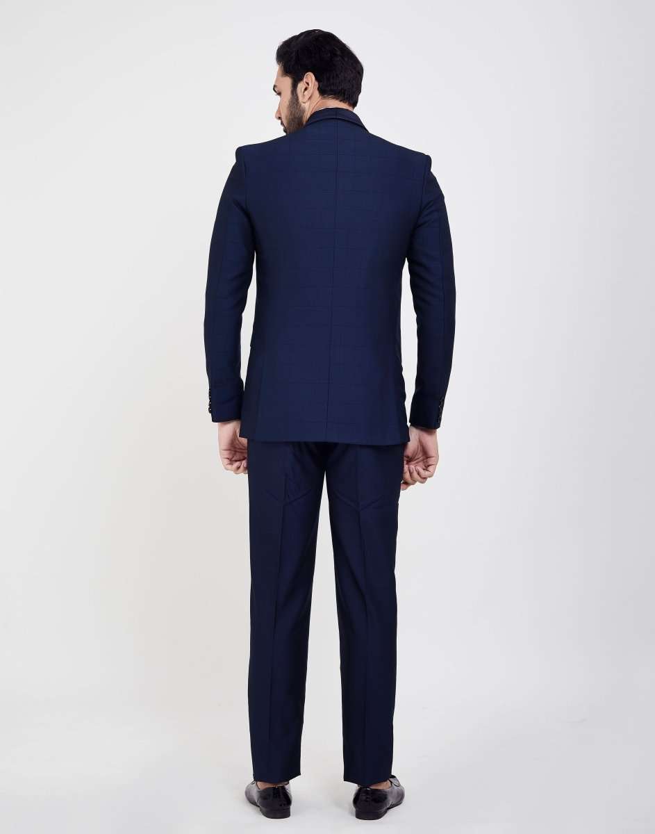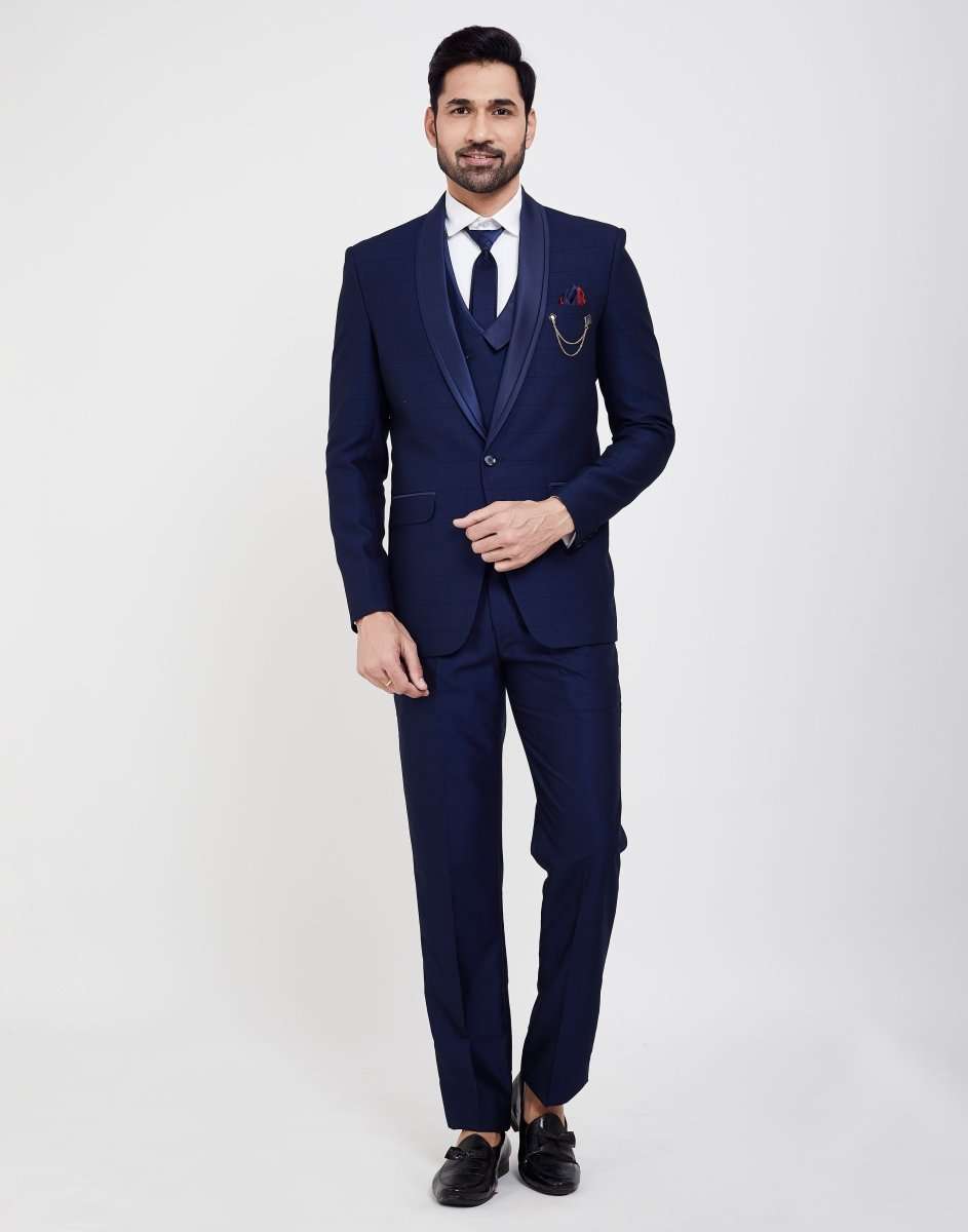 Navy Blue Self Design 5 Pc Tuxido Suit