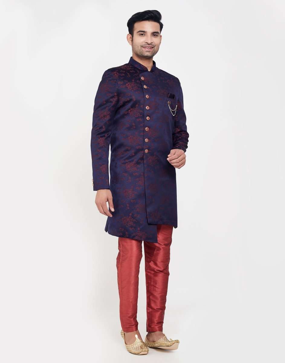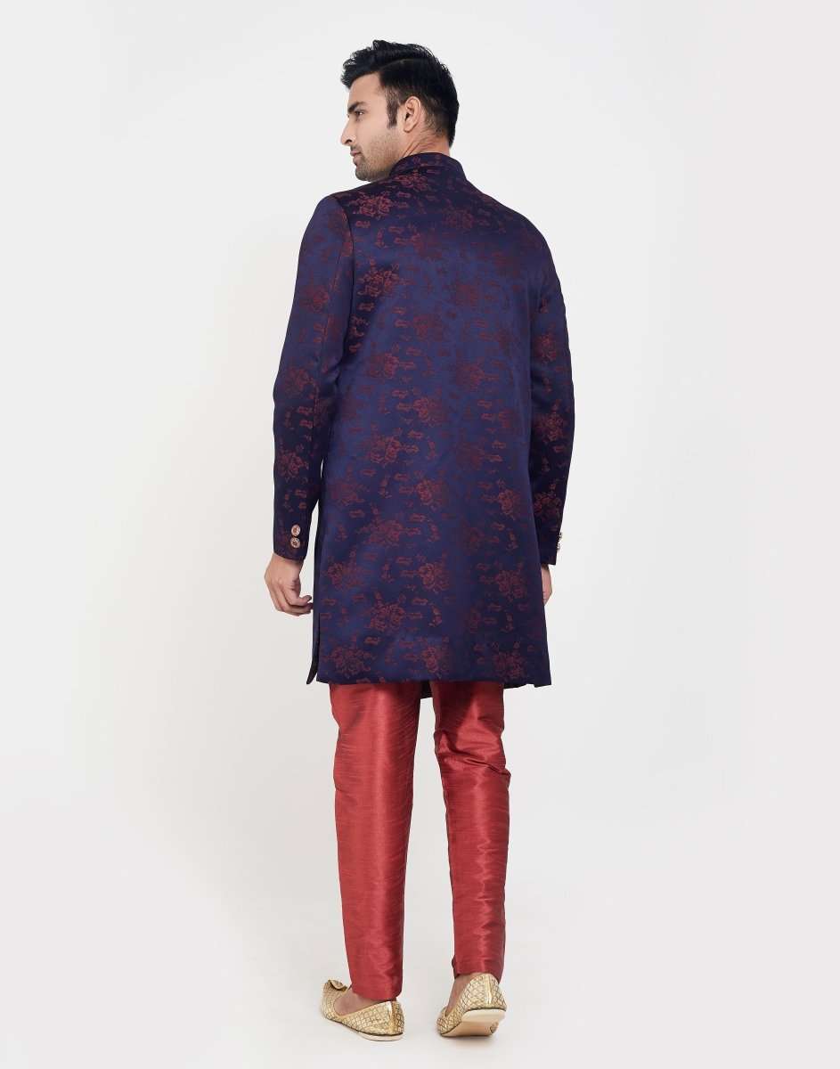 Navy Blue With Marron Self Jacquard Design Semi Indo