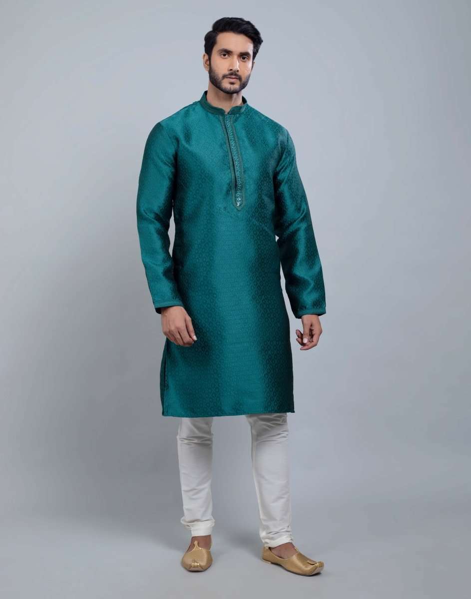 Featuring an all-over print and collar work that is both stylish and elegant, this piece can be dressed up or down depending on your needs. Whether you're attending a formal event or just want to look your best during a night out with friends, this kurta has got you covered in every possible way.