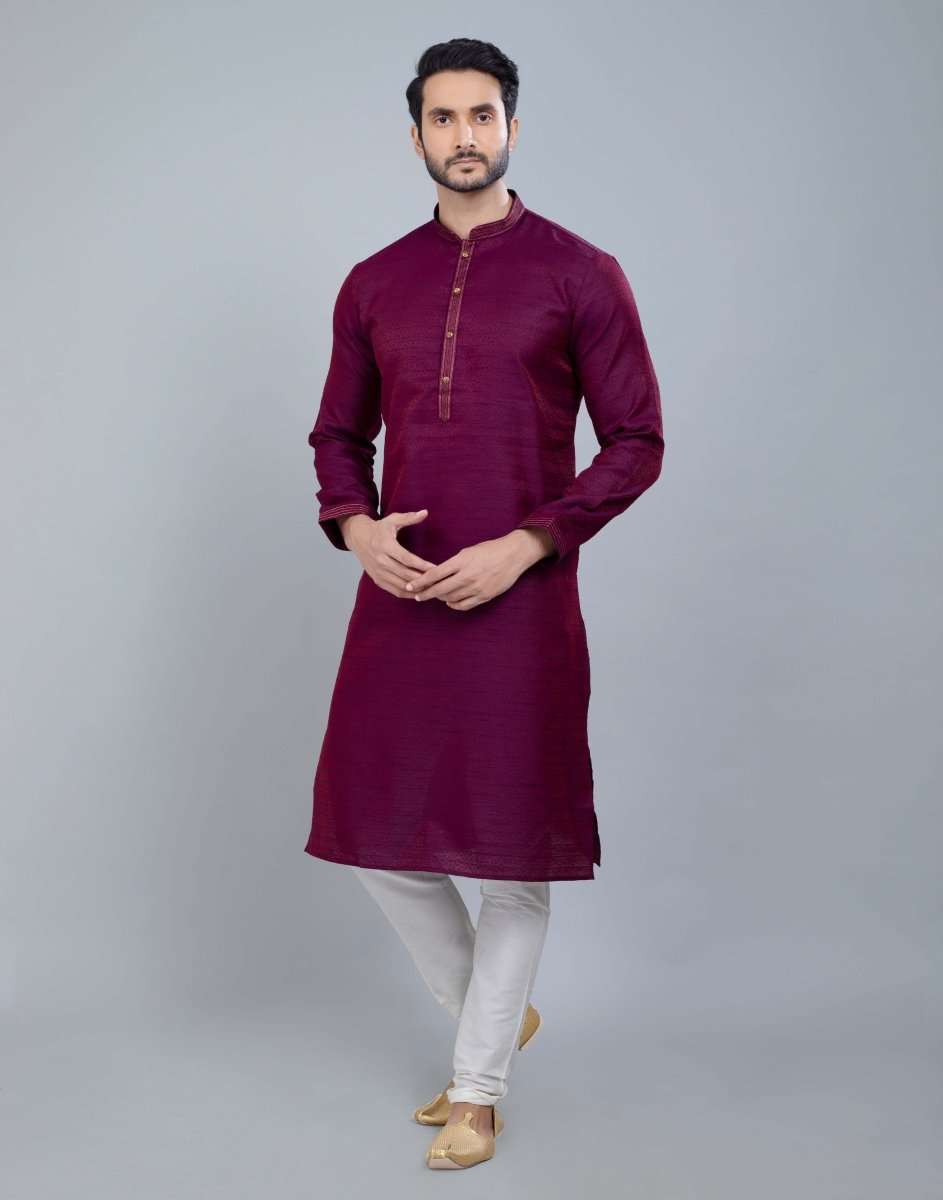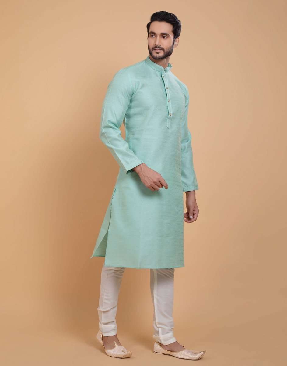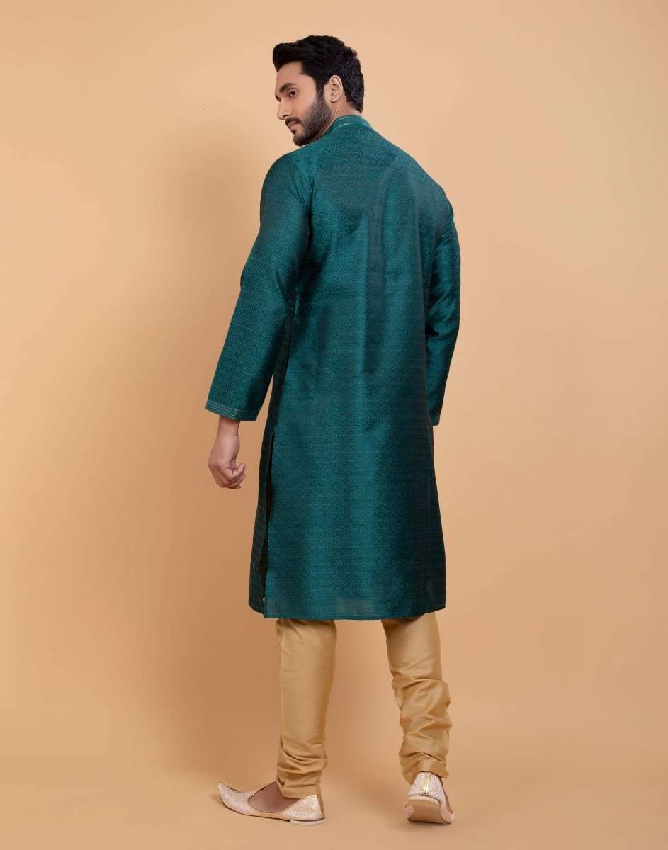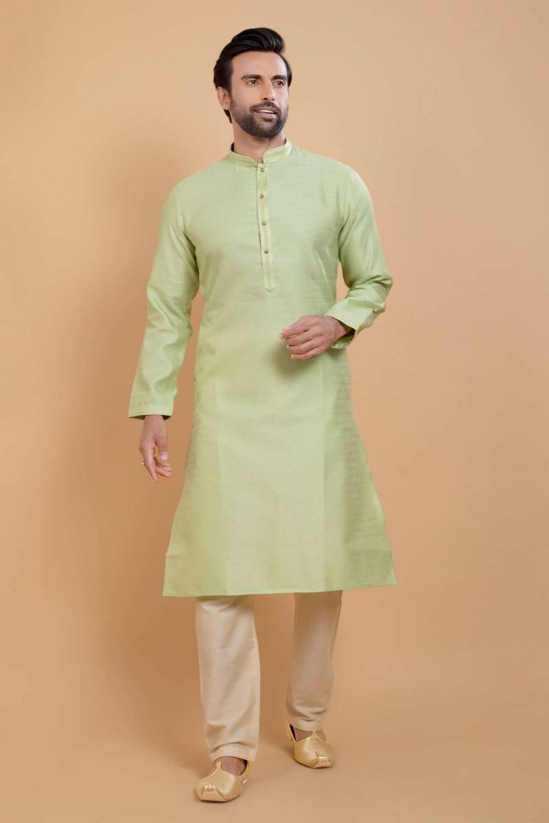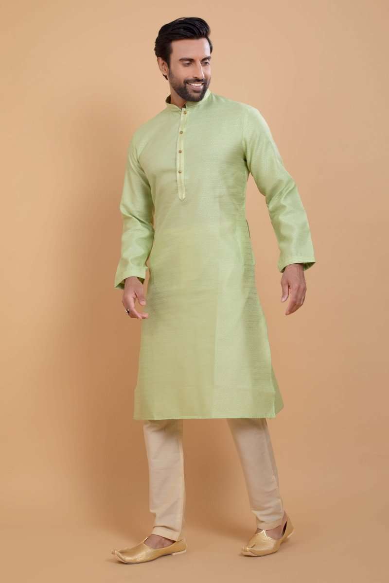 when it comes to wedding season, where all eyes are on the groom's outfit, there couldn't be anything more perfect than this kurta with its unique and standout quality. With its luxurious texture and elegant appearance, this style surely embodies sophistication making any man look dapper- instantly elevating their personality beyond measure!