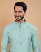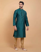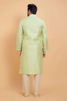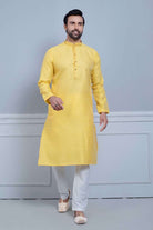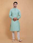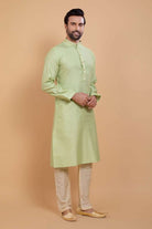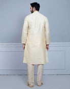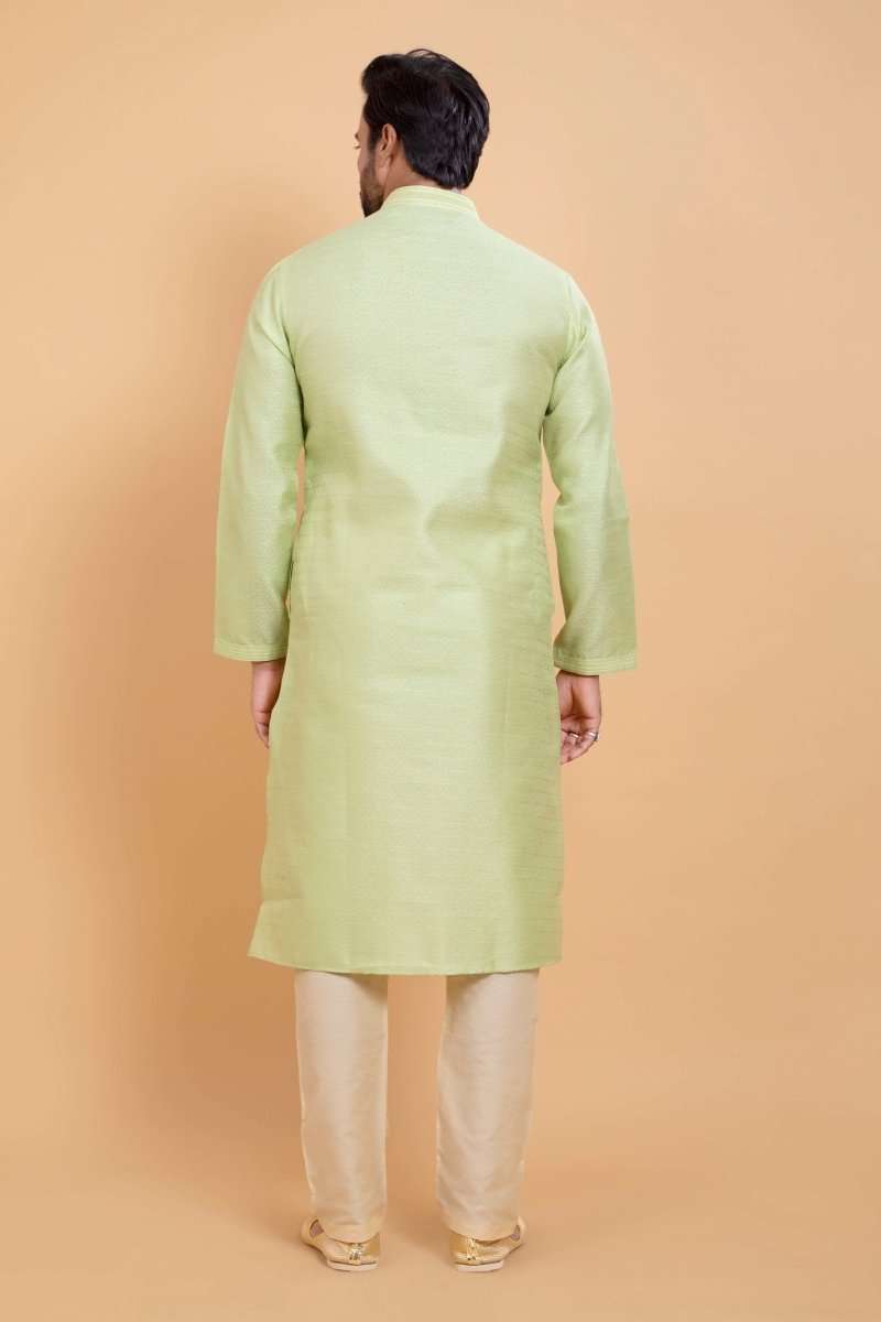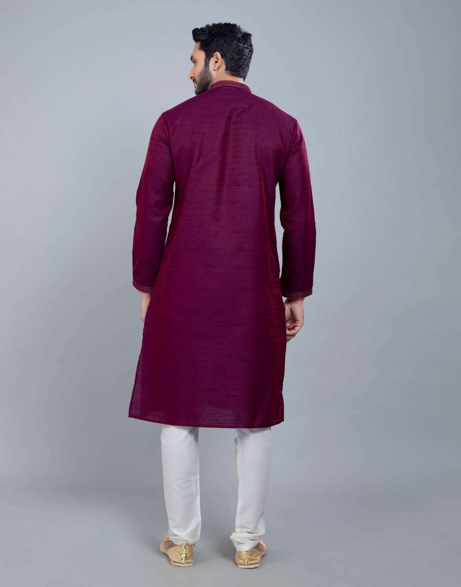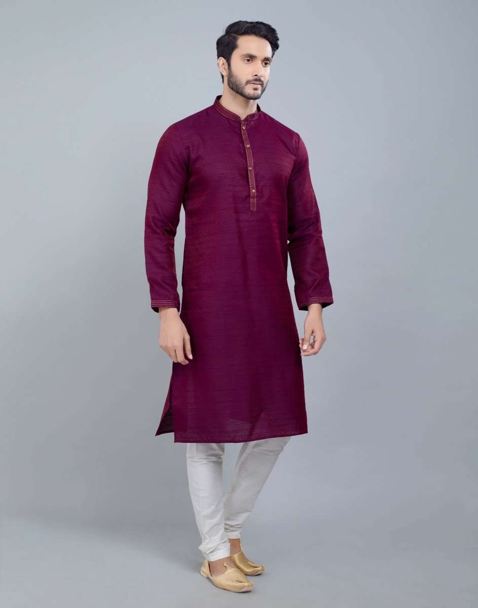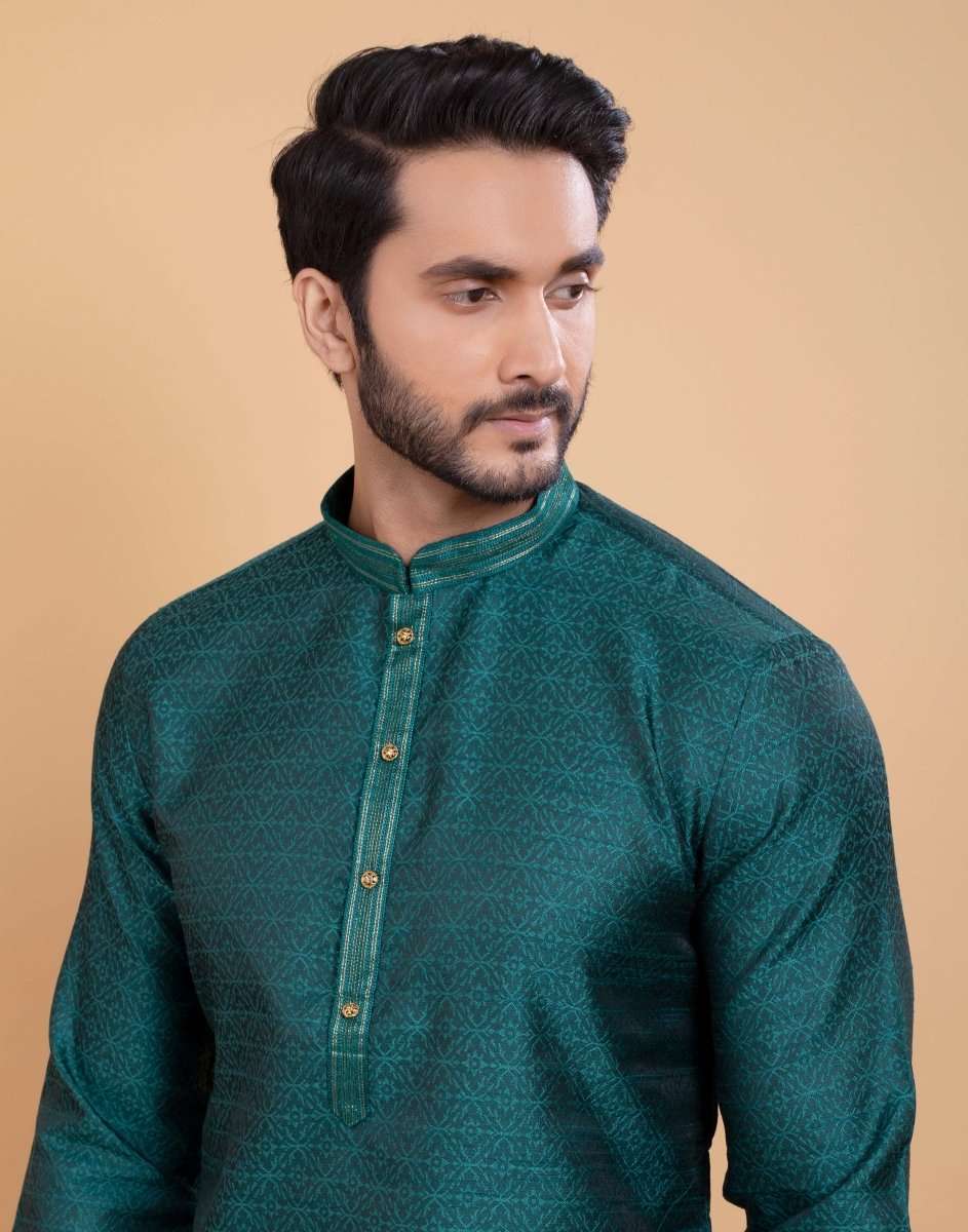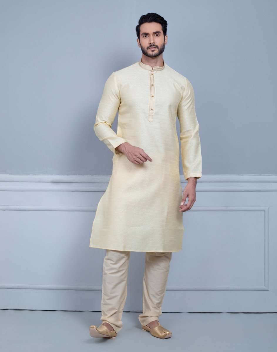 when it comes to wedding season, where all eyes are on the groom's outfit, there couldn't be anything more perfect than this kurta with its unique and standout quality. With its luxurious texture and elegant appearance, this style surely embodies sophistication making any man look dapper- instantly elevating their personality beyond measure!