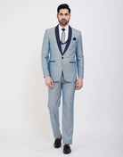 Stylish Sky Blue Self Textured 5 Pc Tuxido Designer Suit