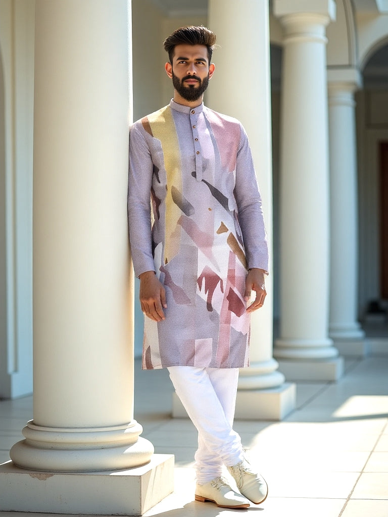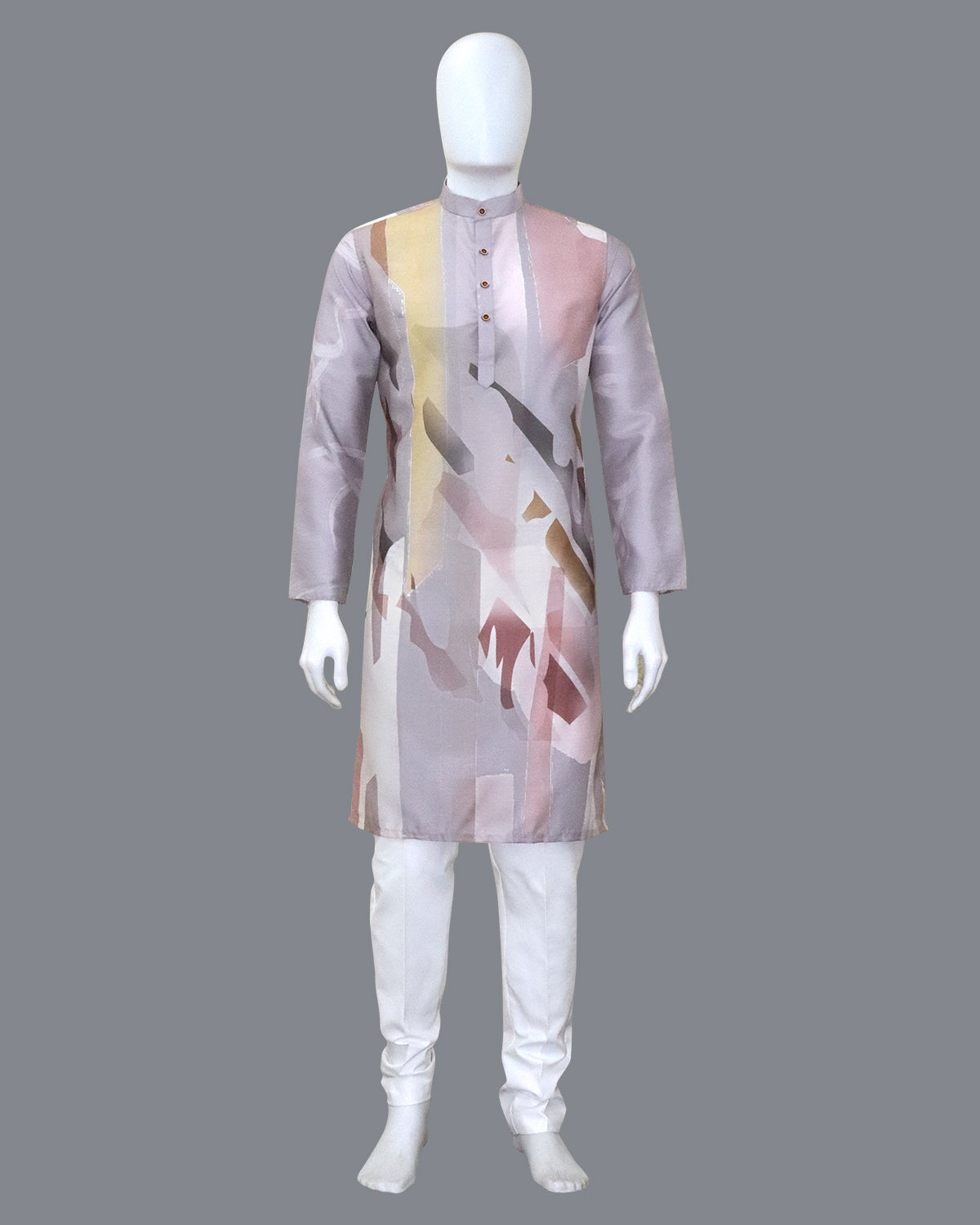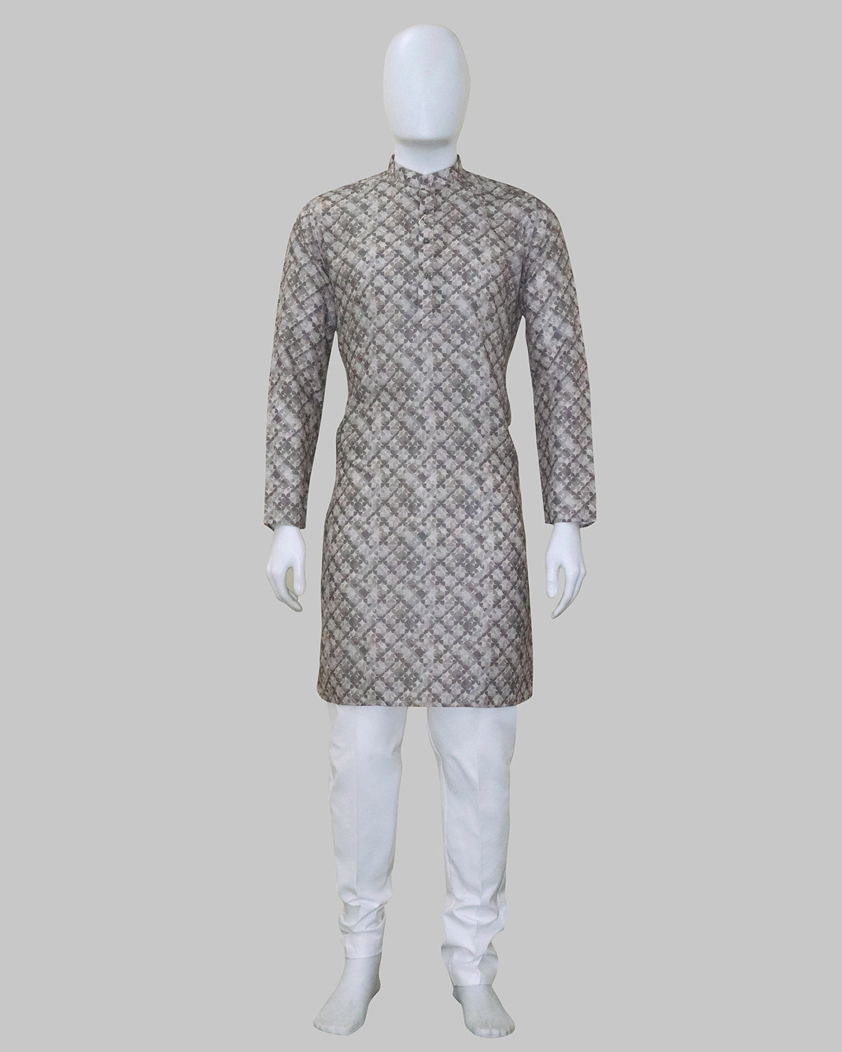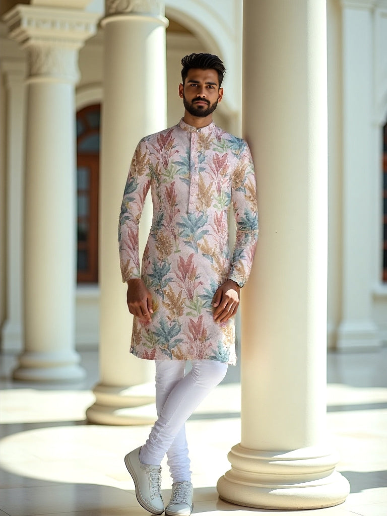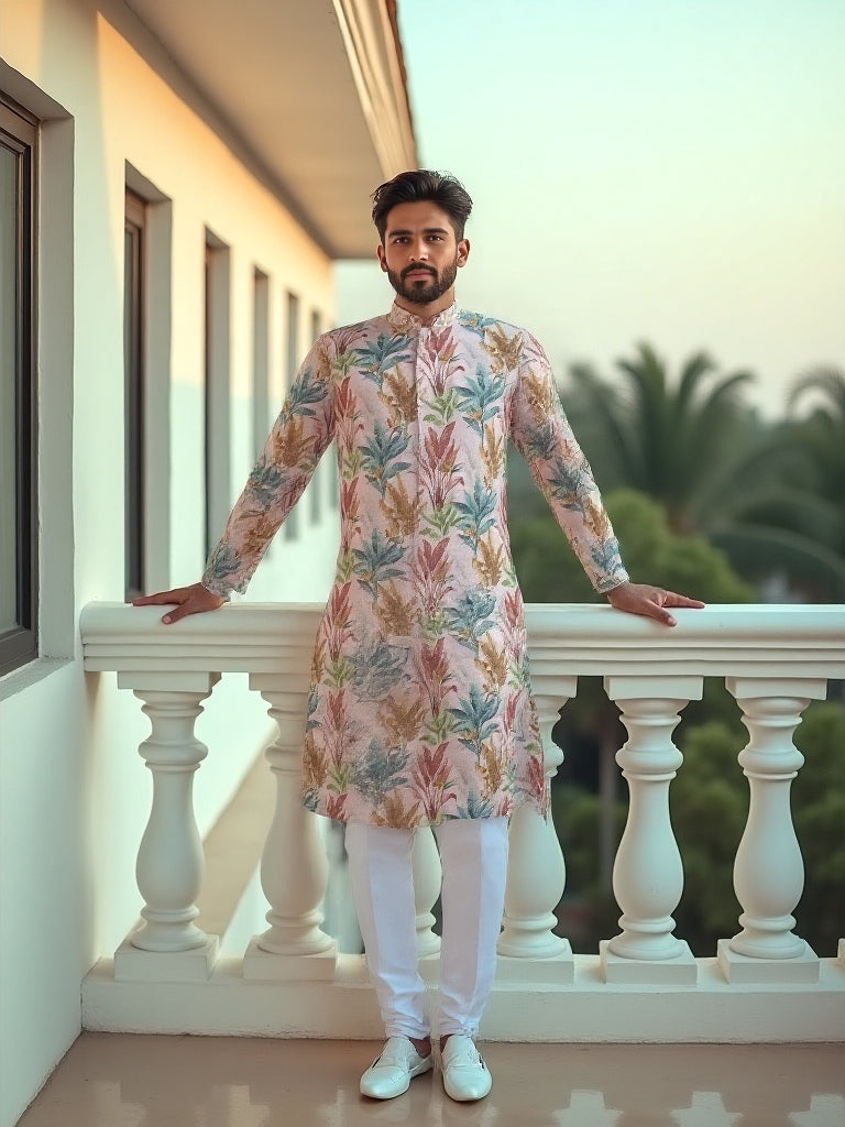 Cream Floral Multi Thread Embroidery with Stones work Milky Silk Sherwani