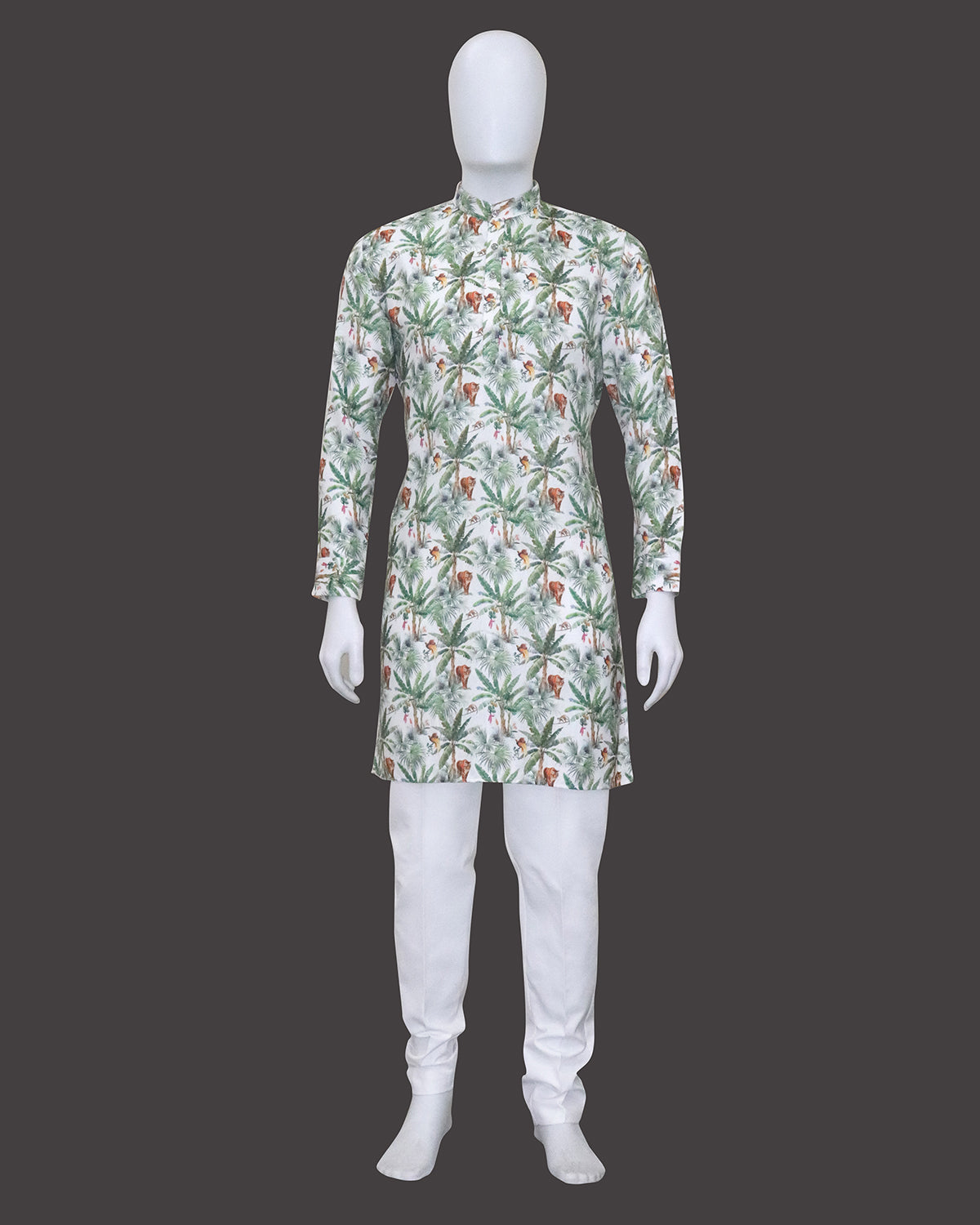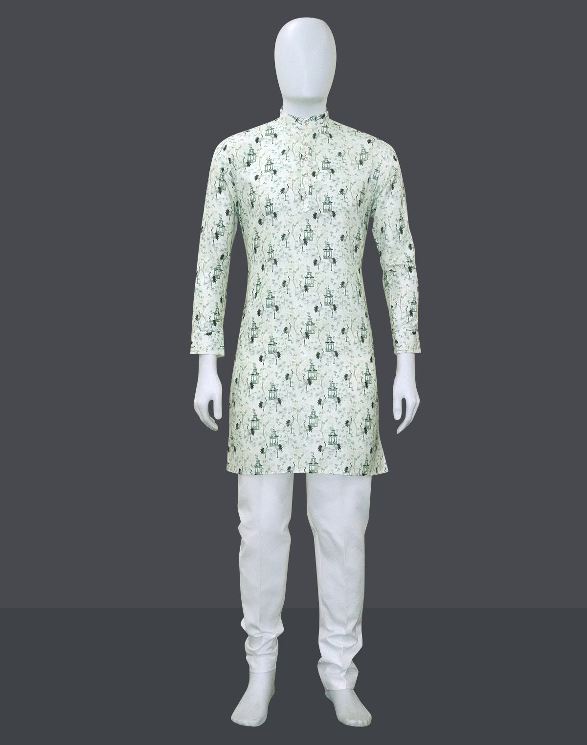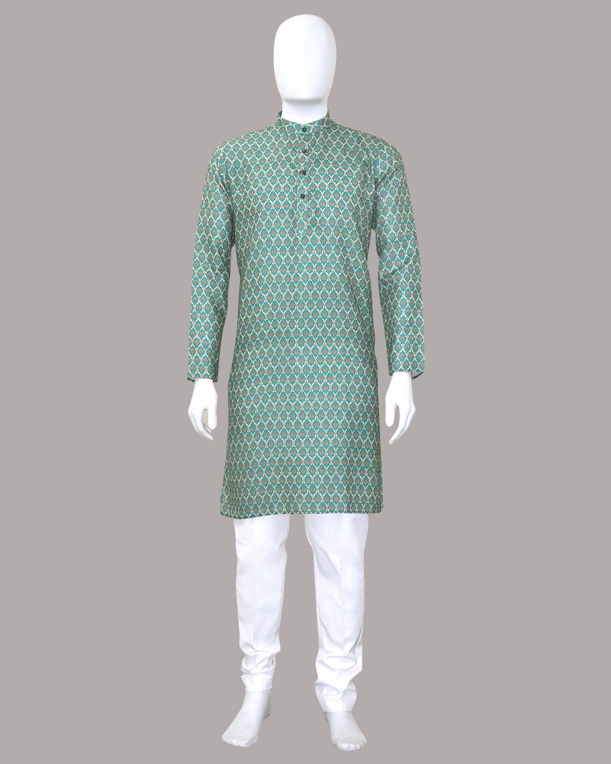 Elegant Pista Birds Patterned Cotton Printed Kurta