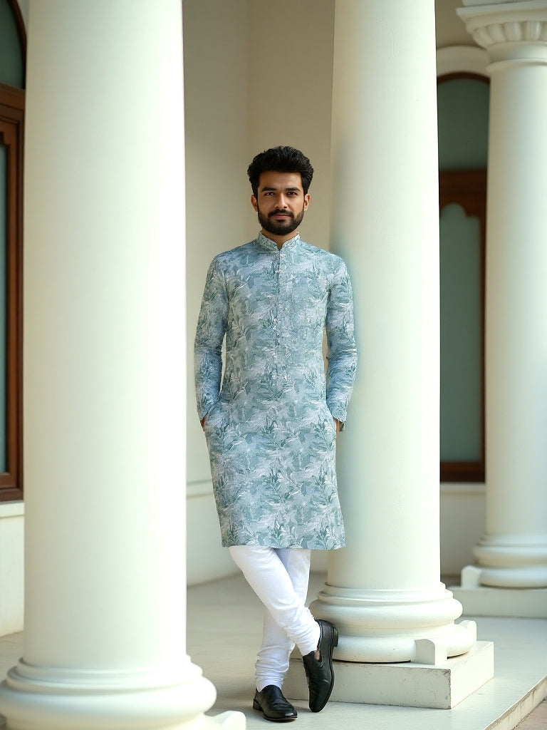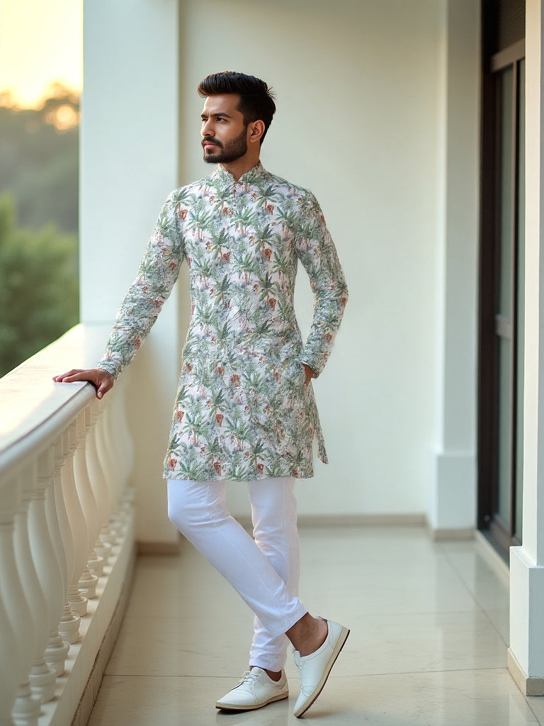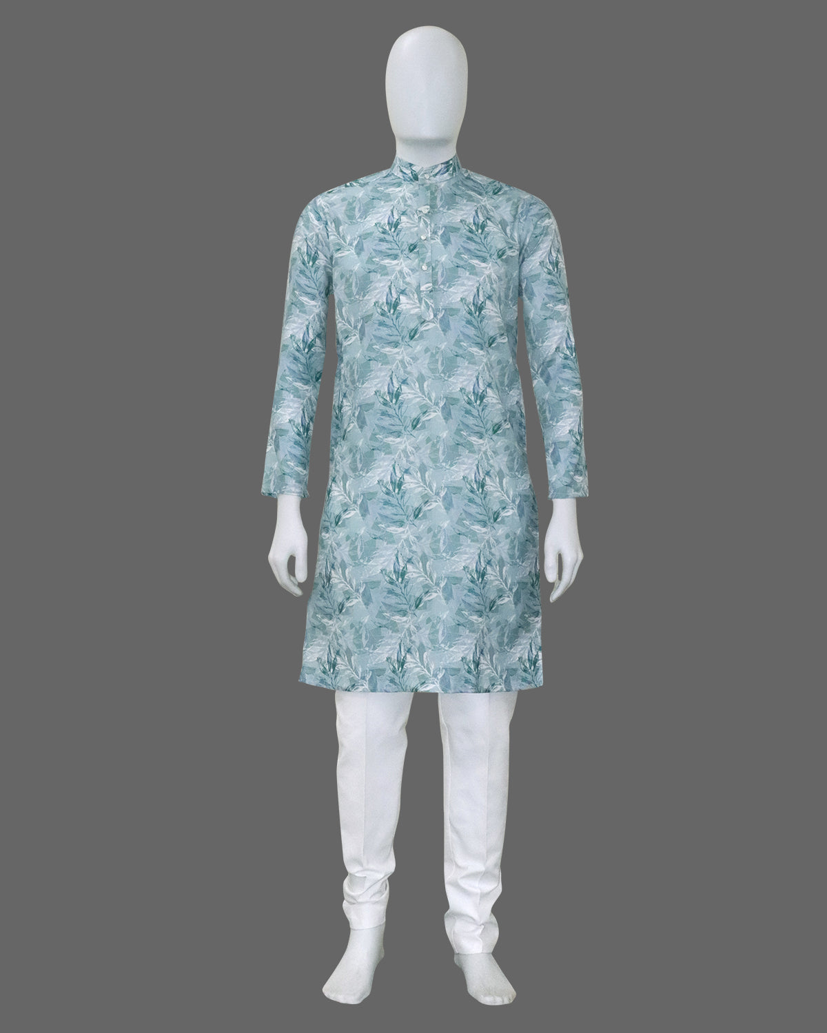 Elegant Pista Birds Patterned Cotton Printed Kurta