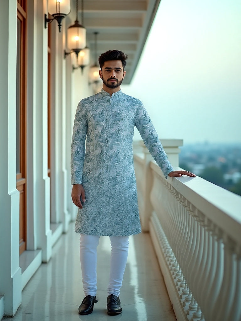 Cutdana work Velvet Blue Stylish Designer Bandhgala Set