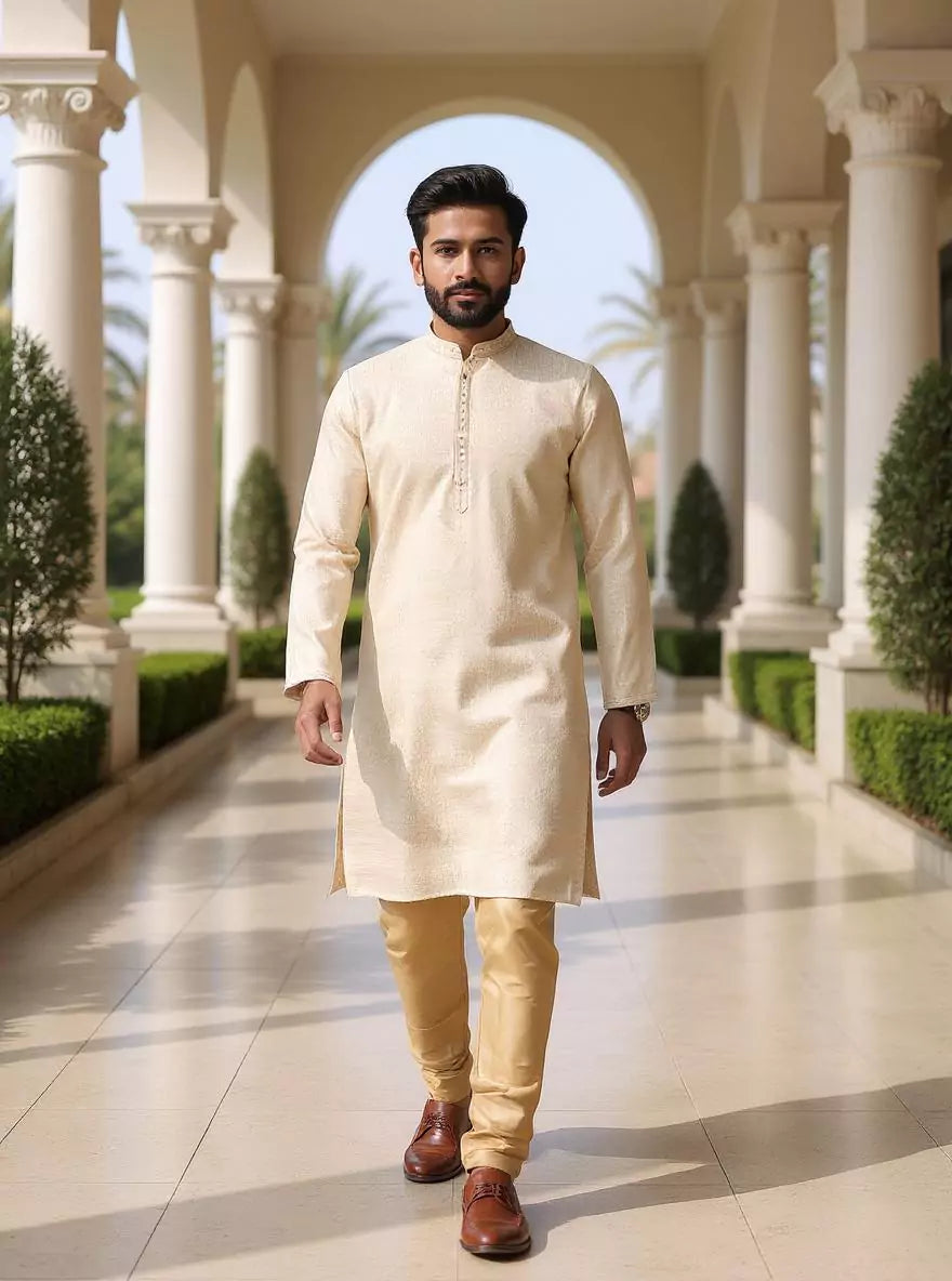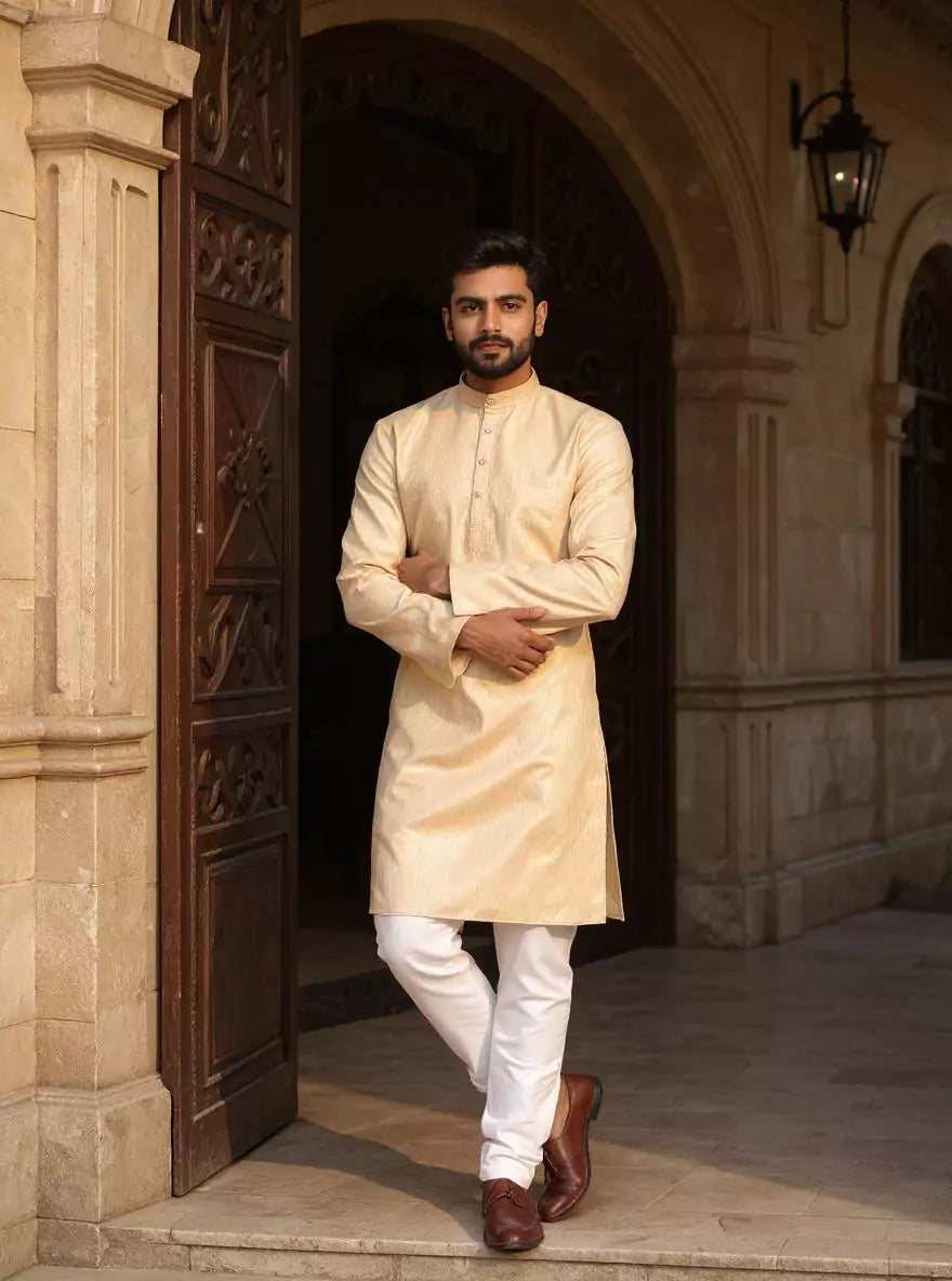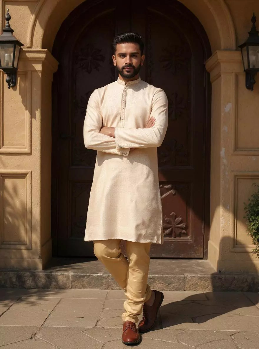 Self Weaving with Zari Booti's Jacquard Kurta Pajama