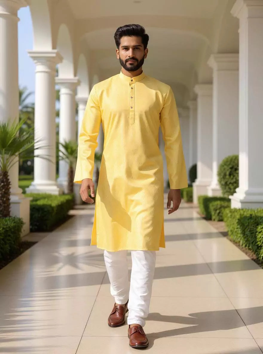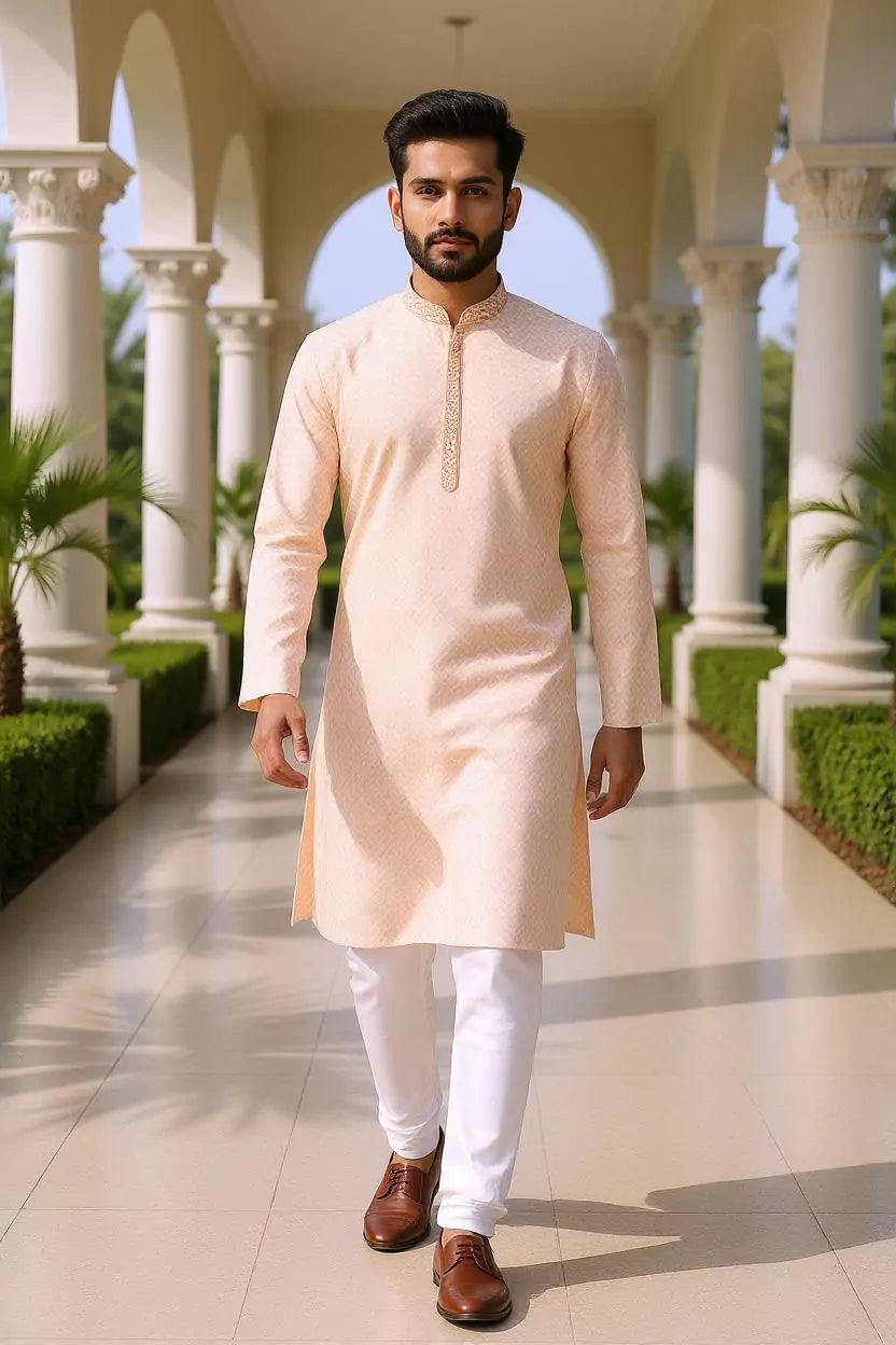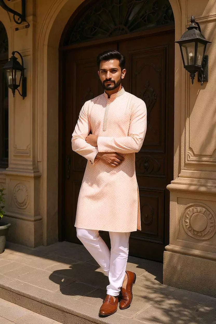 Self Weaving with Zari Booti's Jacquard Kurta Pajama