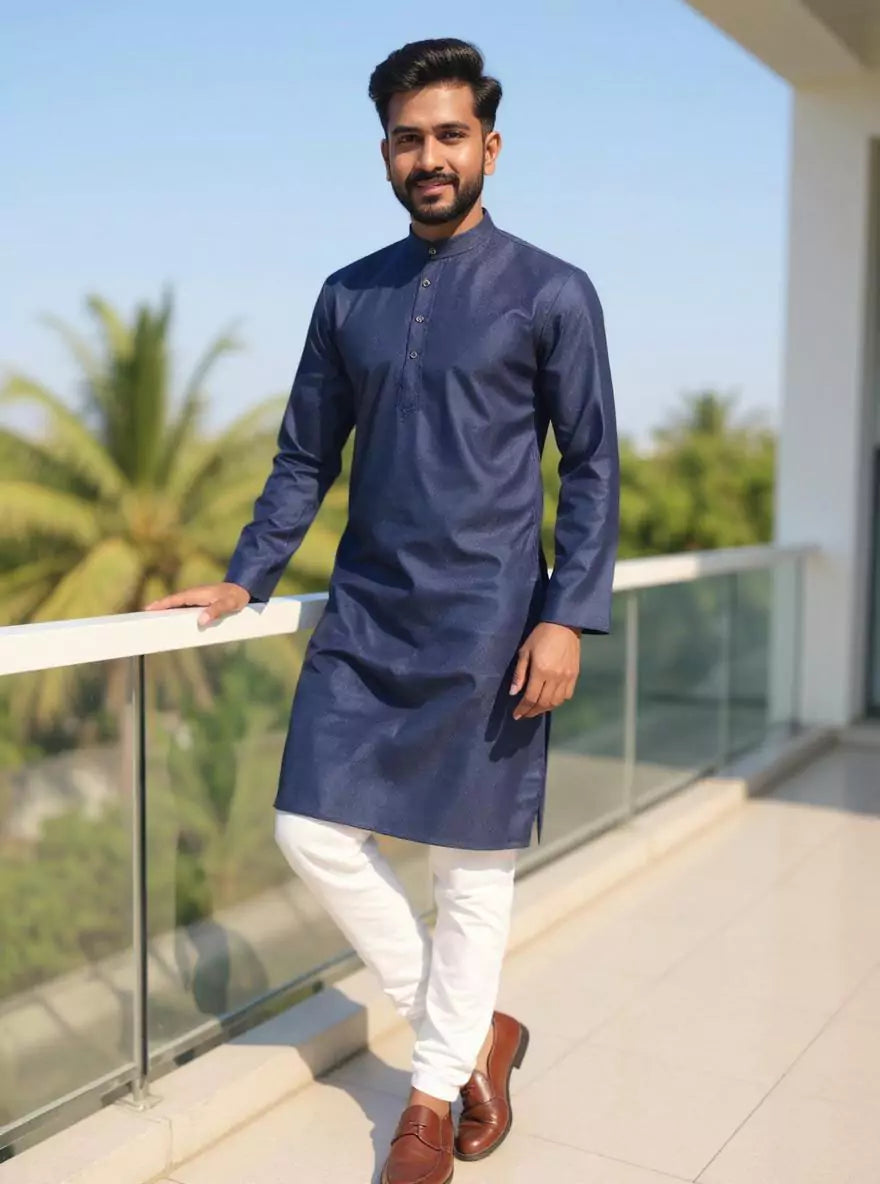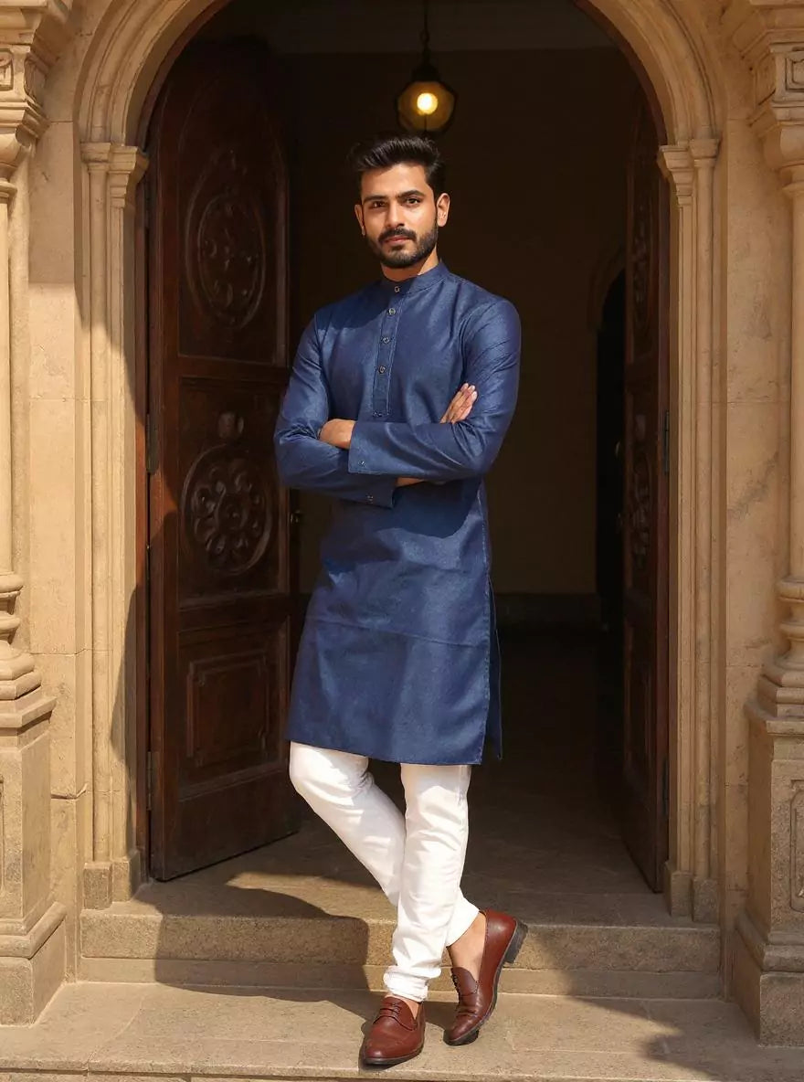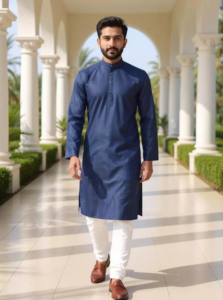 Navy Blue Graphic Weaving Cotton Kurta Pajama
