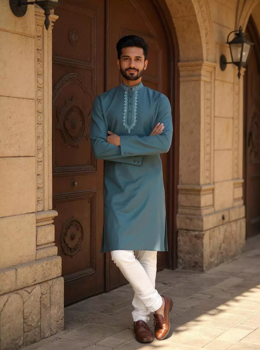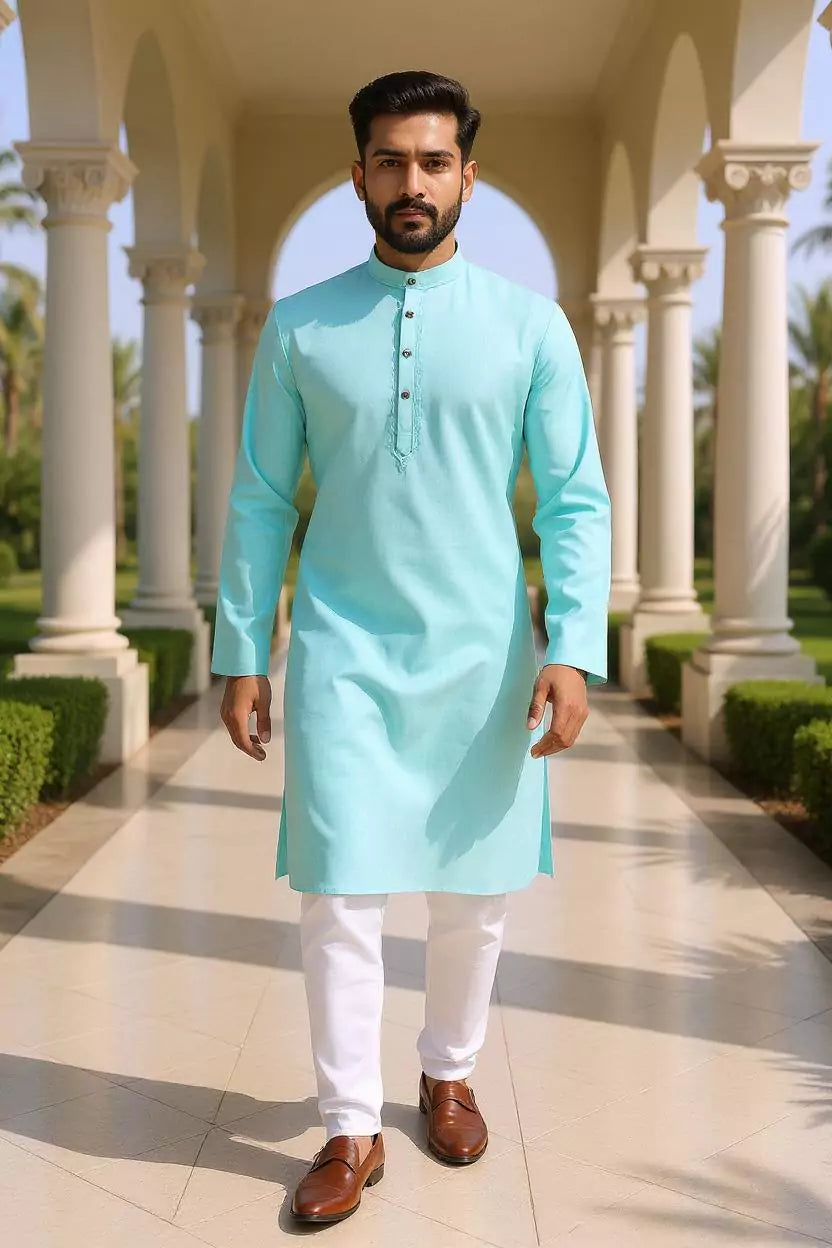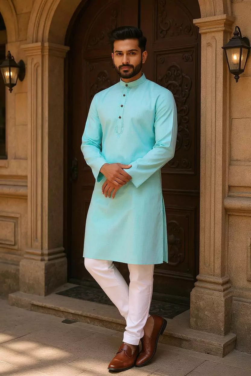 Firozi Coloured Flex Cotton Kurta Pyjama Set