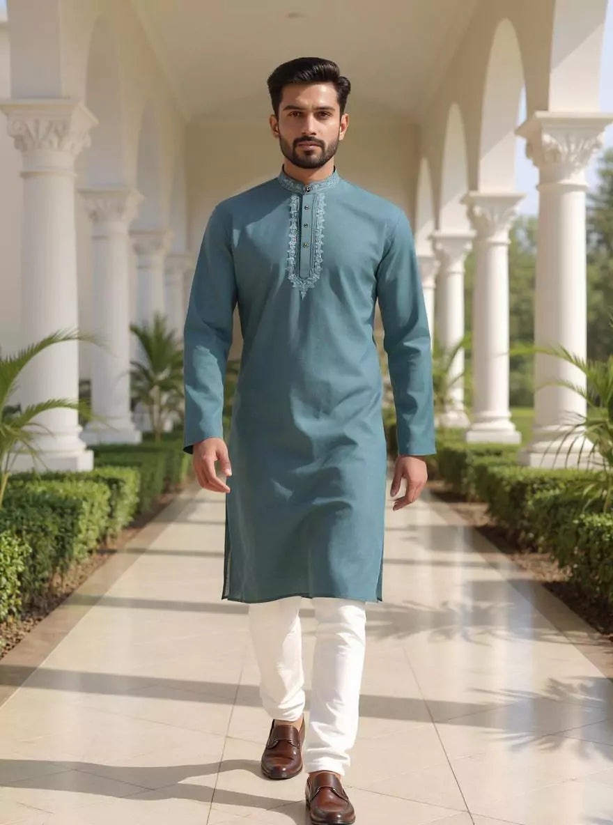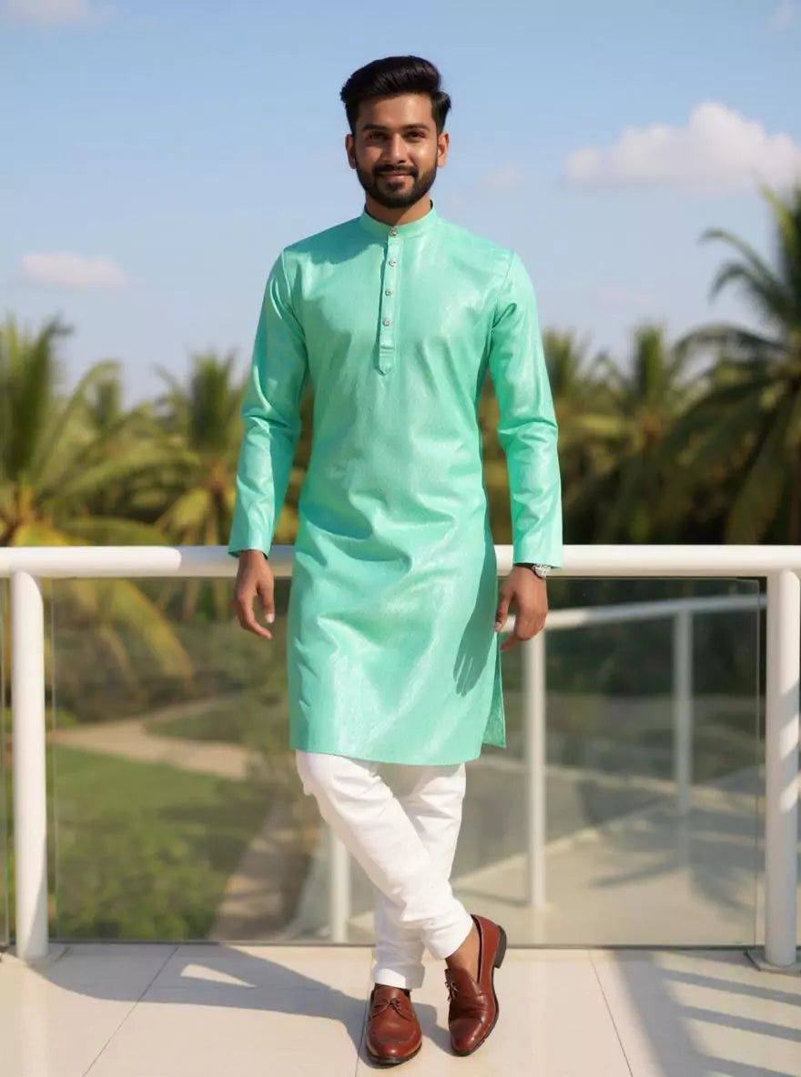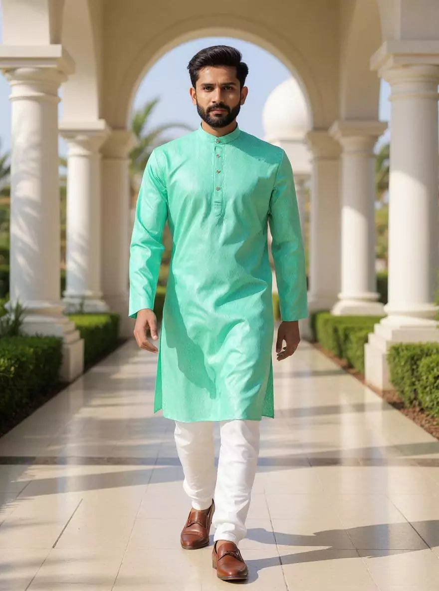 Firozi Coloured Flex Cotton Kurta Pyjama Set