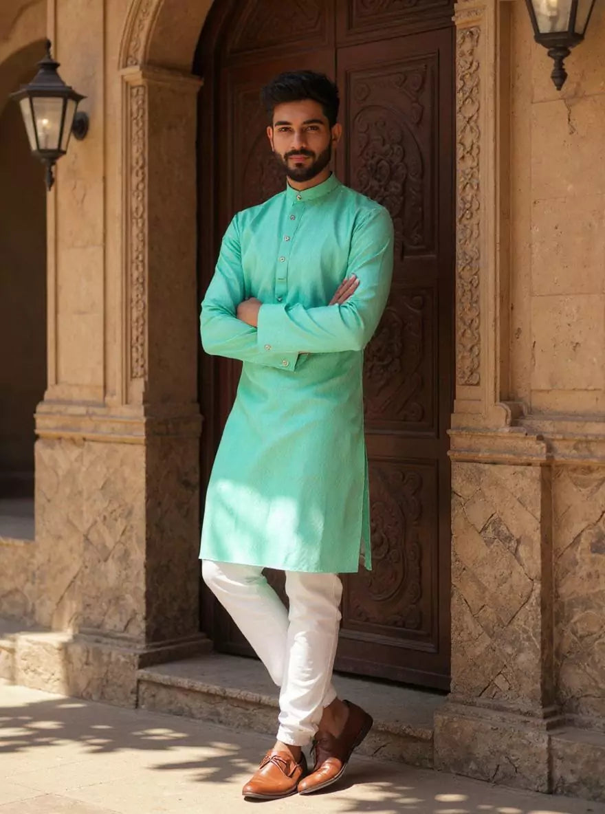 Pista Flex Cotton Plain Kurta with Pajama Set