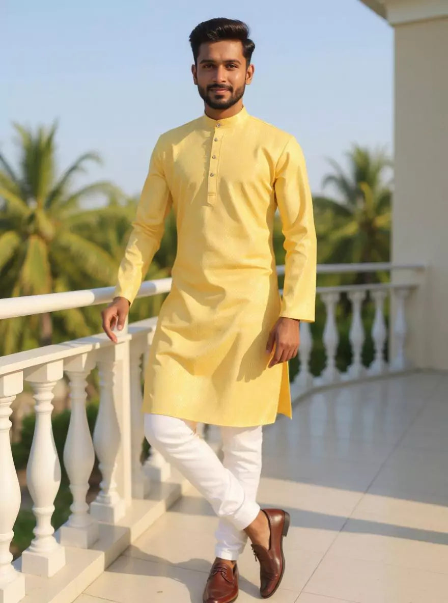 Men's Self Weaving Design Cotton Kurta Pajama Set