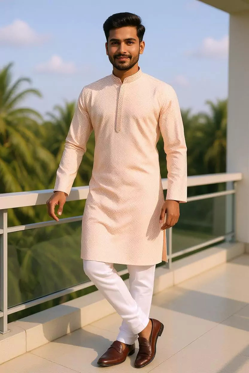 Cotton Self Design Weaving Kurta and Pyjama Set