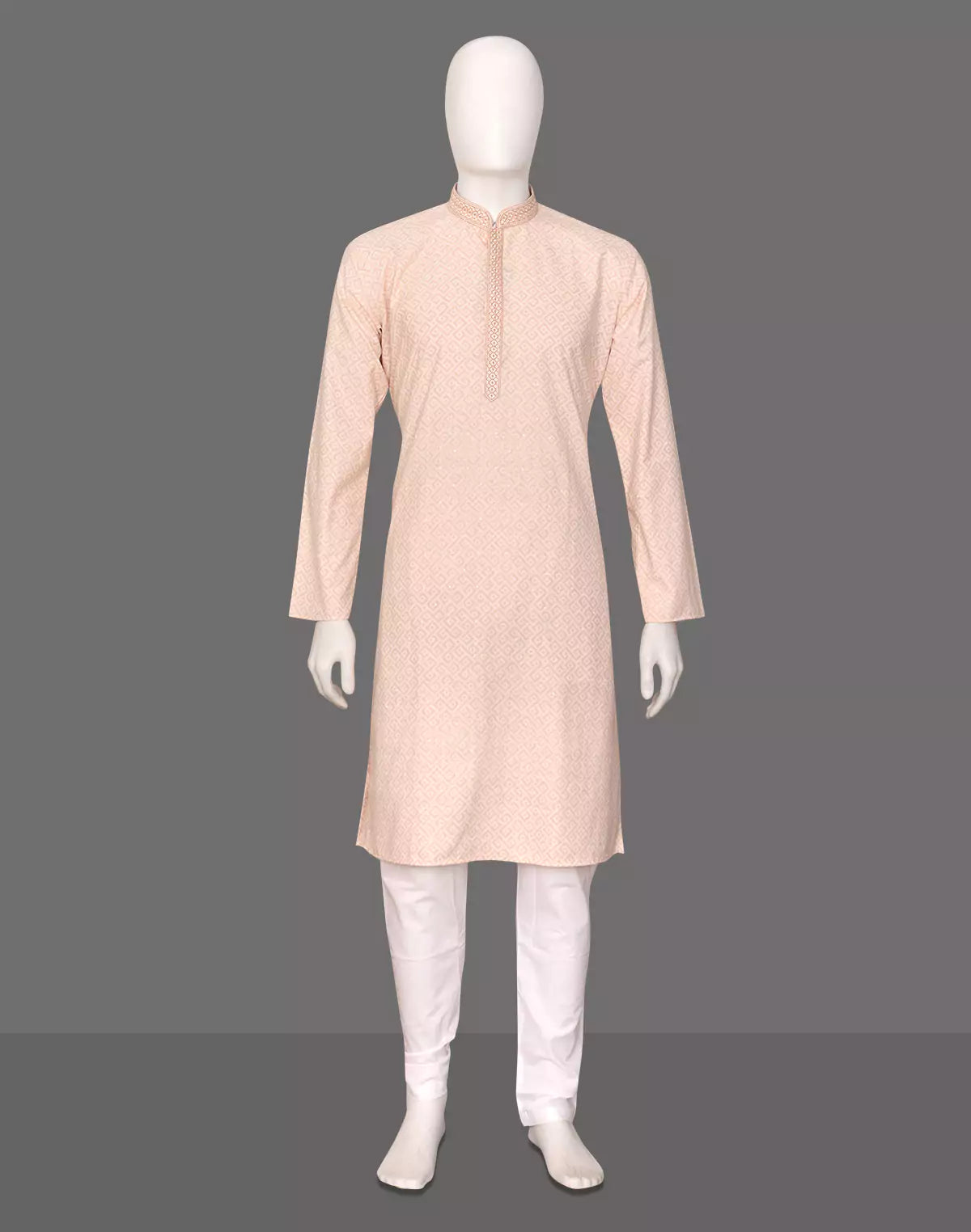Peach Cotton Silk Kurta with Thread Embroidery Jacket