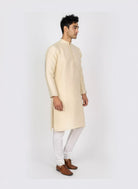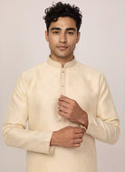 Elegant men's self floral weaving jacquard kurta paired with off-white pyjama. Perfect for festive and party wear. Stylish, comfortable, and timelessly traditional.