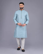 Sky Coloured Self Design Soft Silk Stones work Kurta Pyjama Set