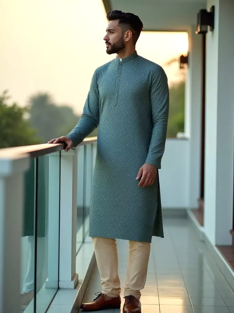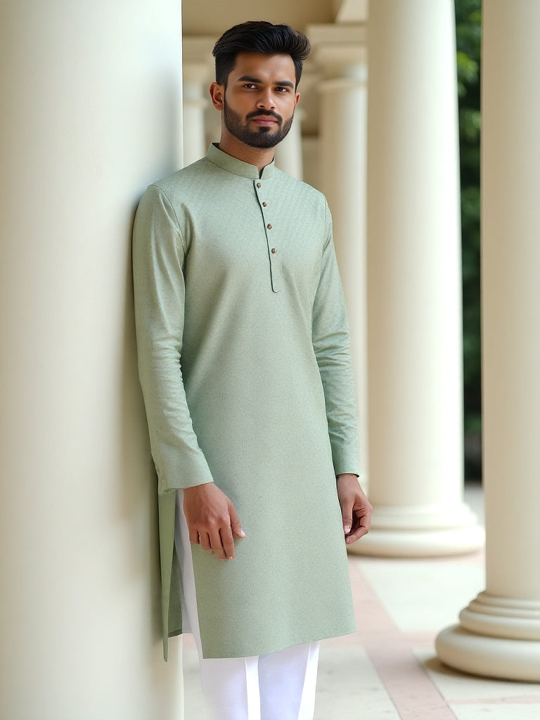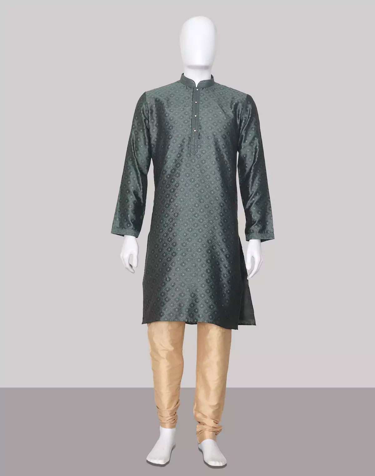 Sage Green Self Design Jacquard Stylish Kurta Pyjama Set