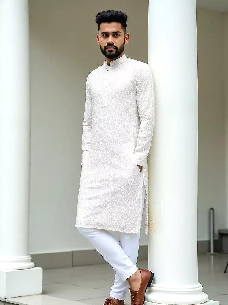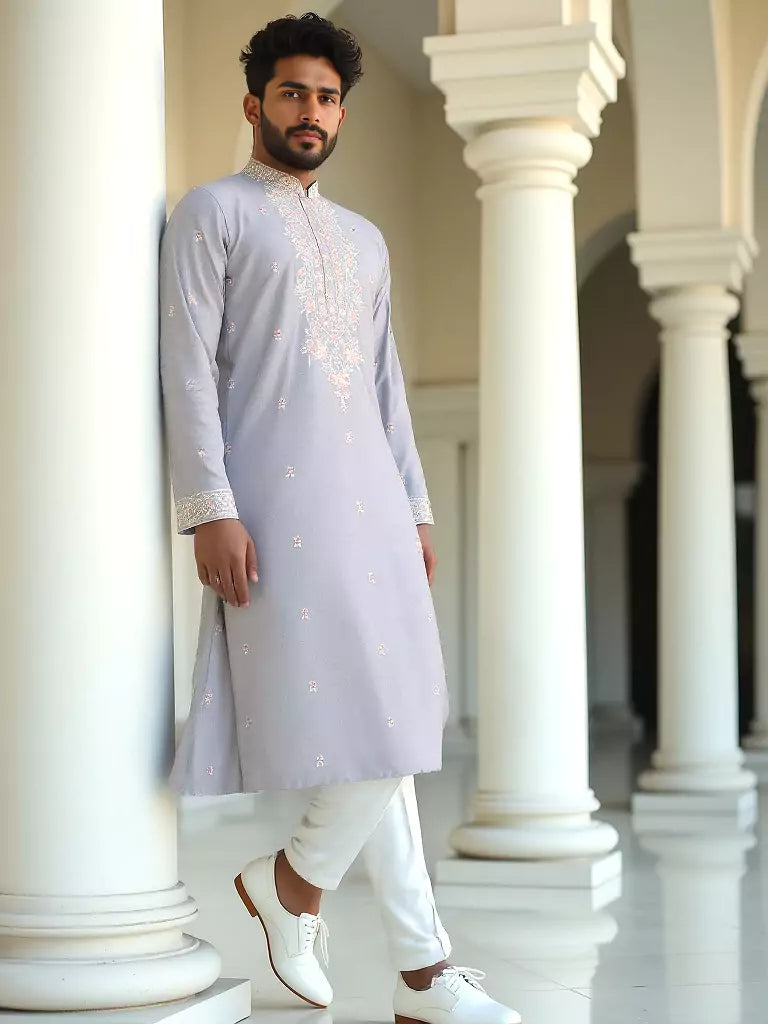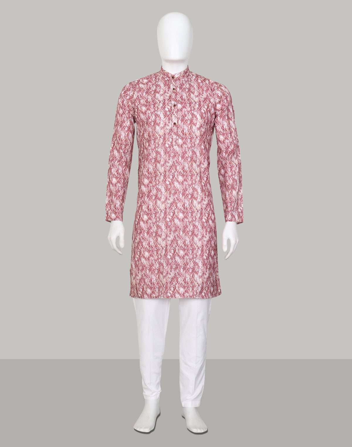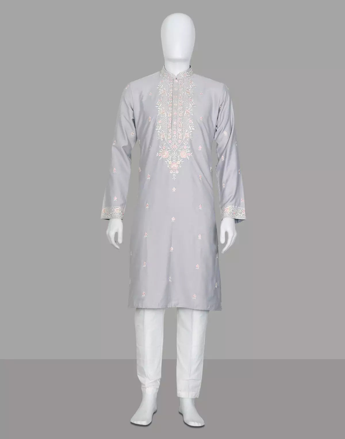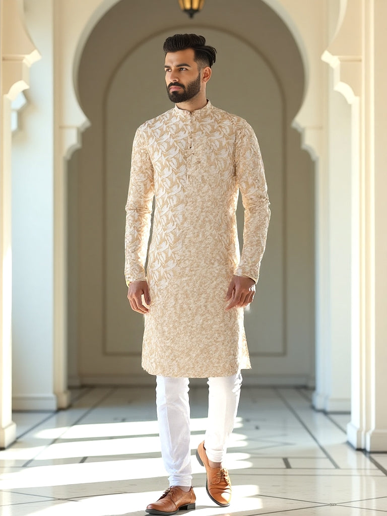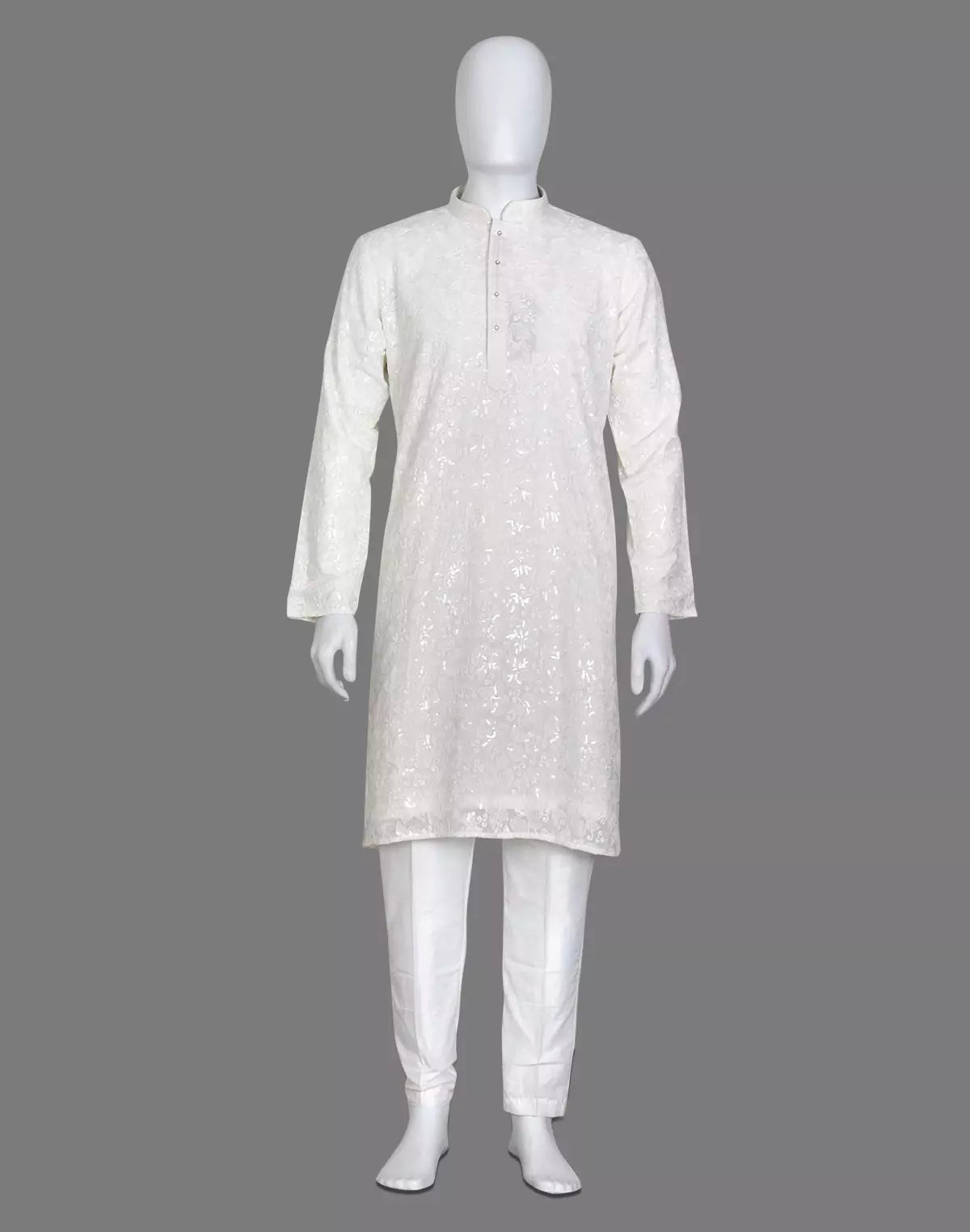 Self Floral Embroidery work Giza Cotton Kurta Pajama