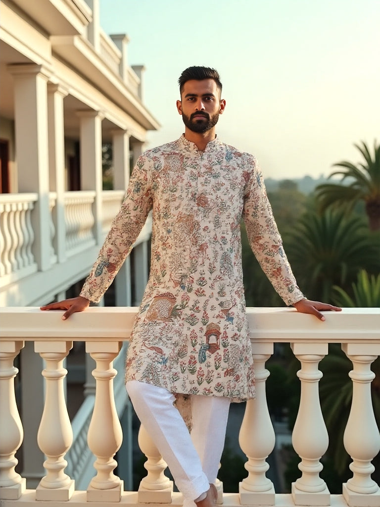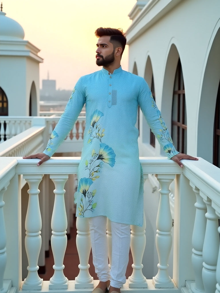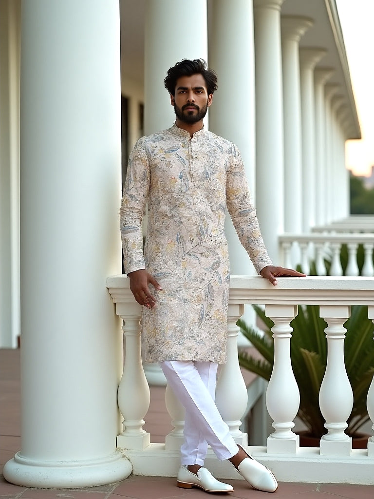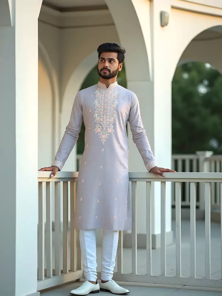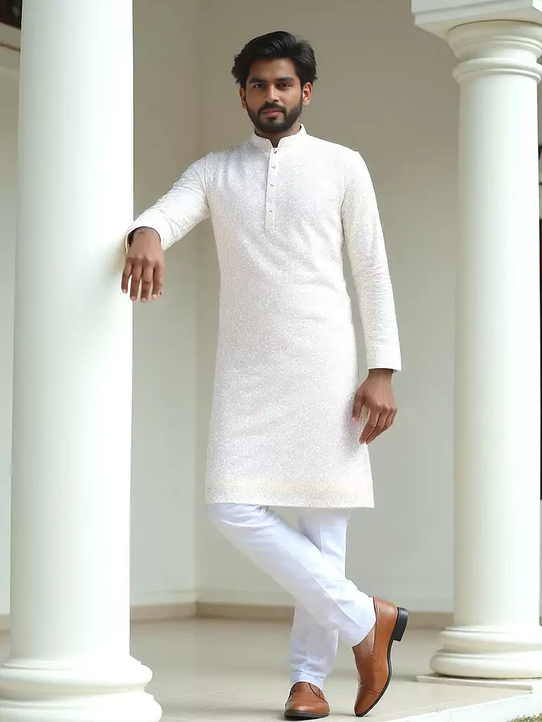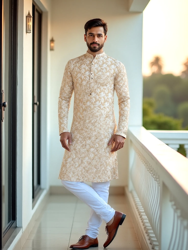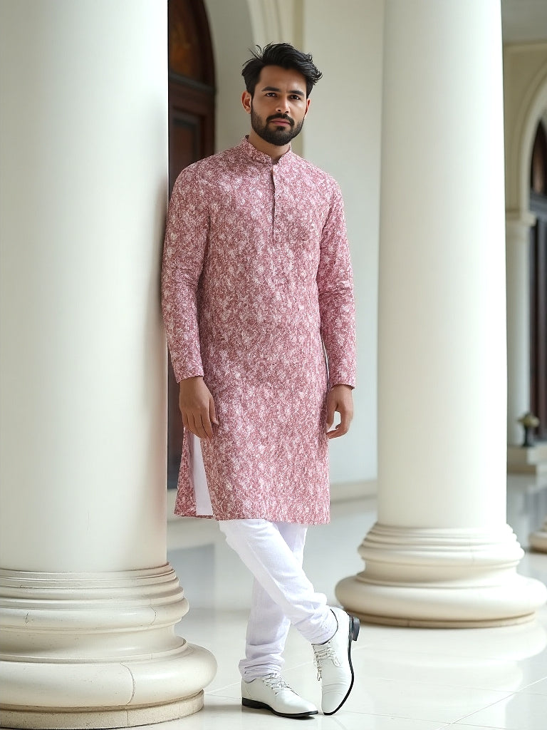 Self Floral Embroidery work Giza Cotton Kurta Pajama