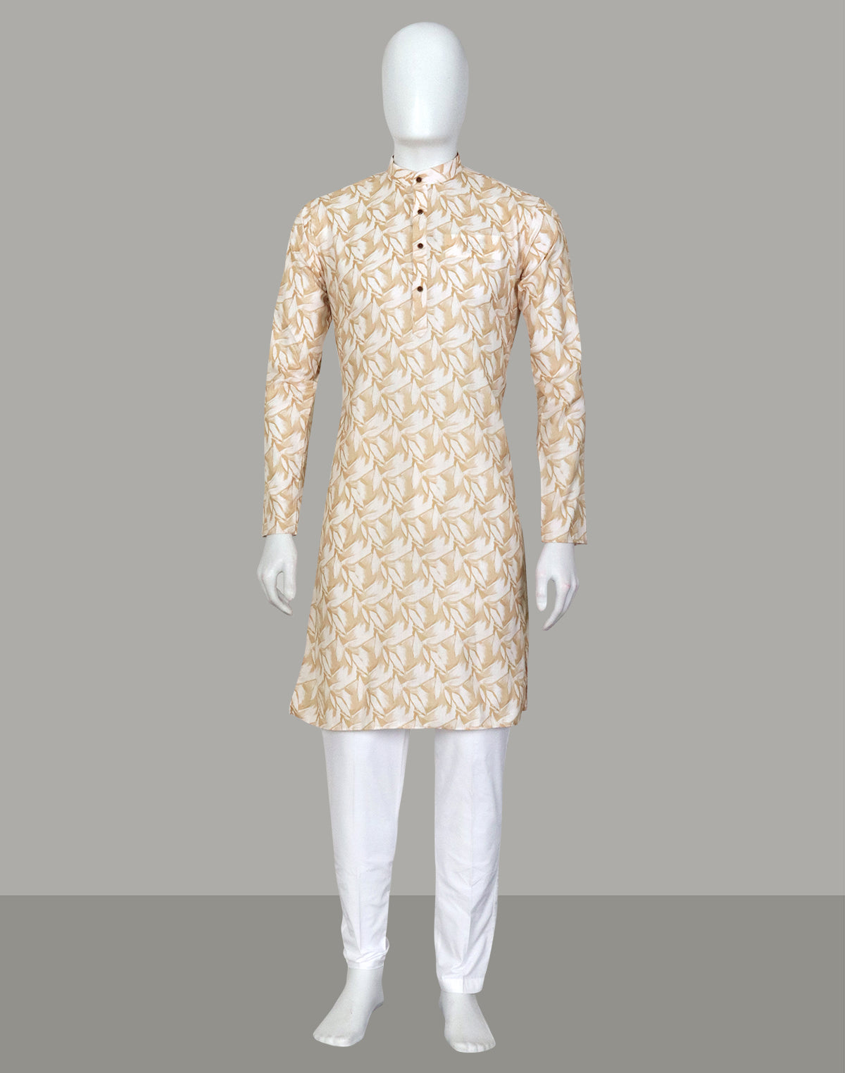 Floral Motifs with Animal Print Fawn Colour Kurta Pyjama