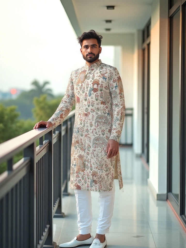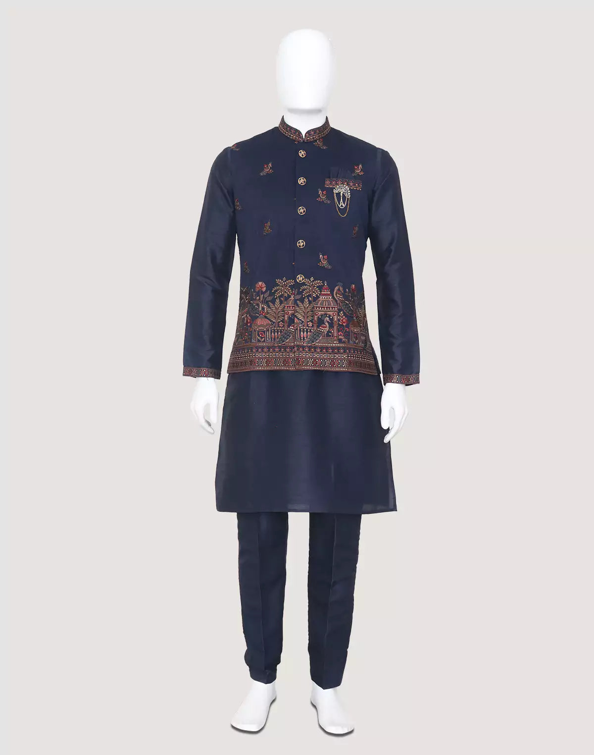 All Over Polyester Kurta Pajama with Heavy Thread work Men's Jacket