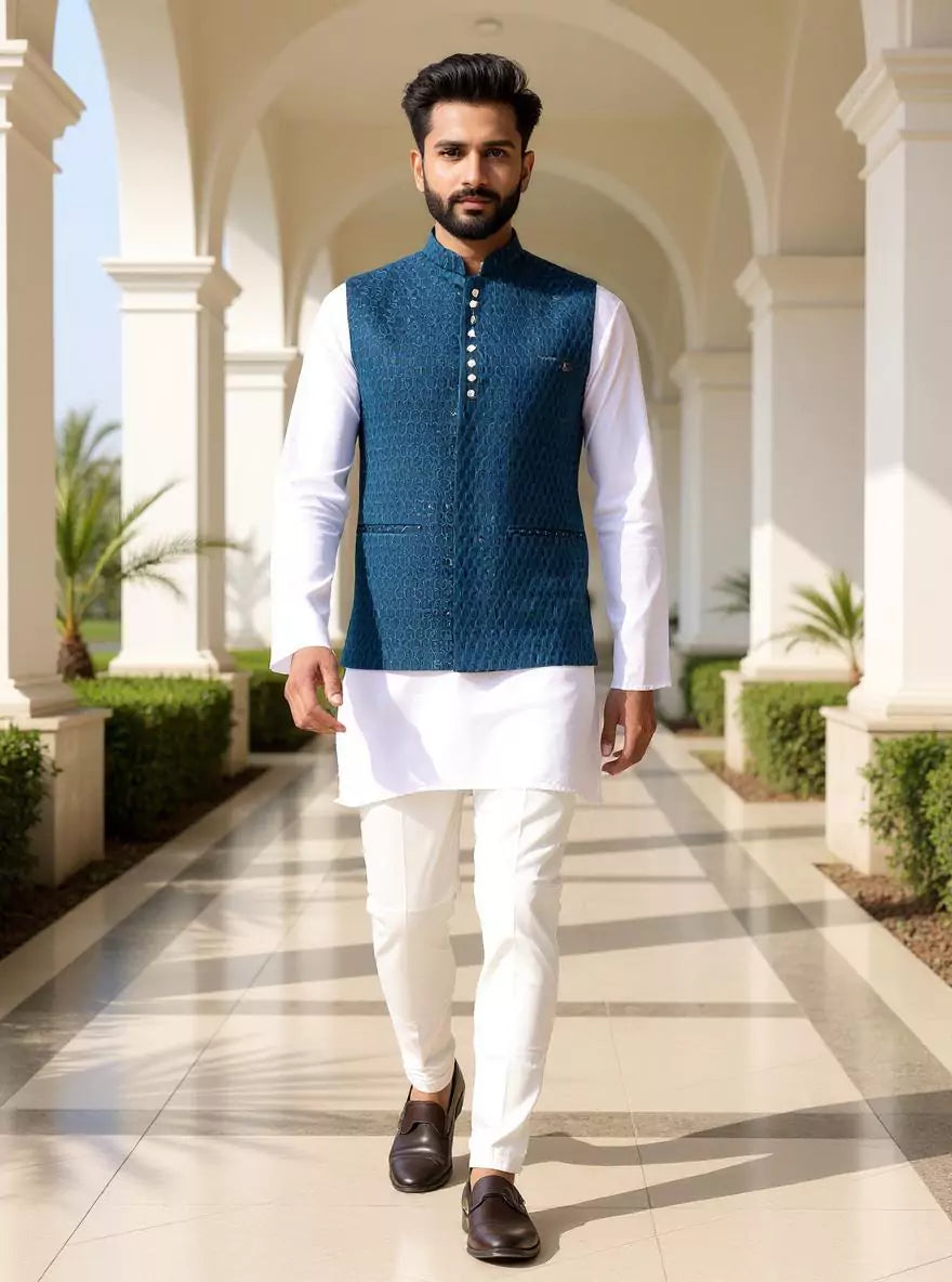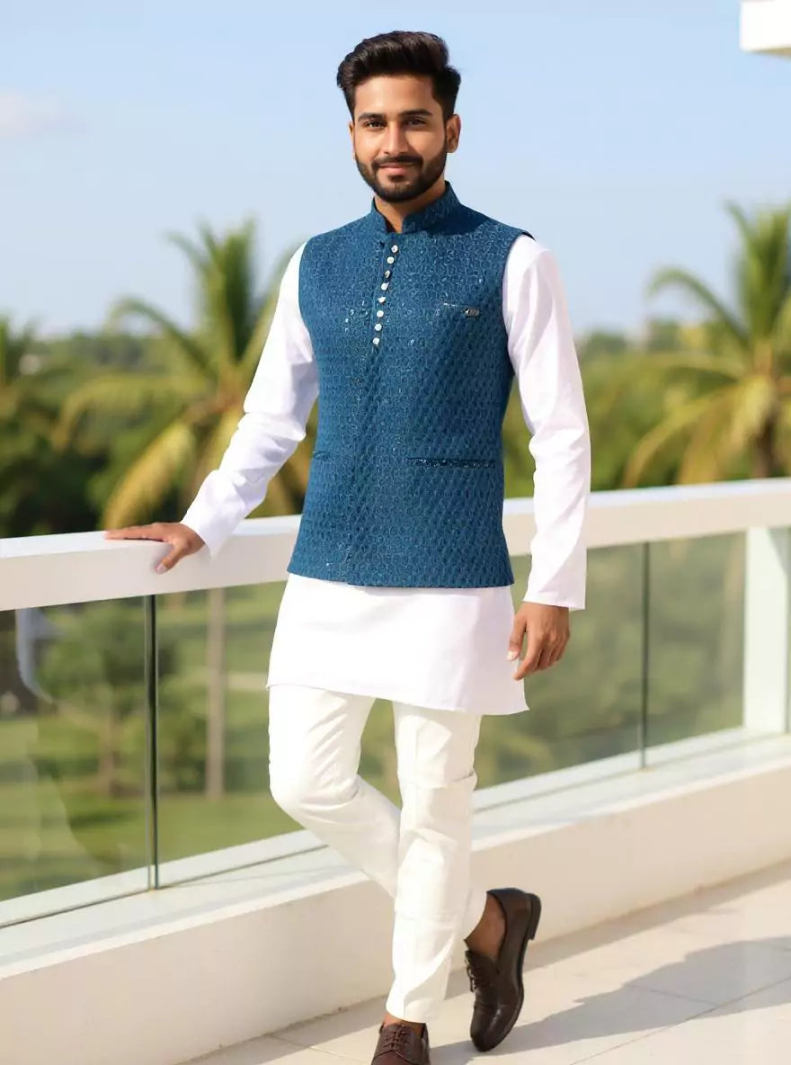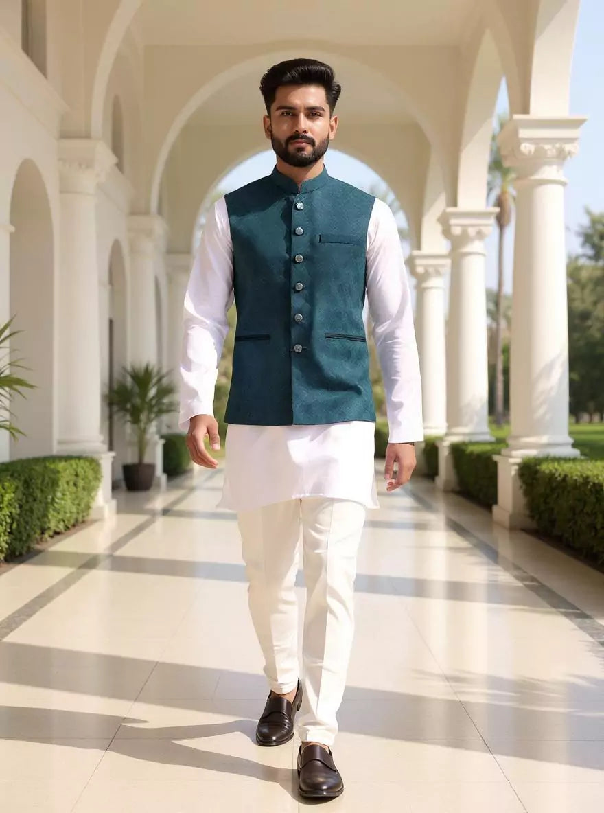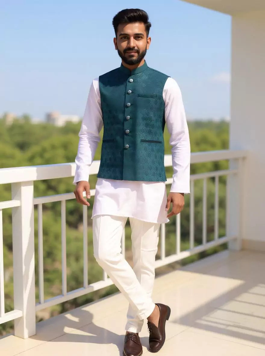 Captivating Rama Self Woven Jacquard Waist Coat for Men