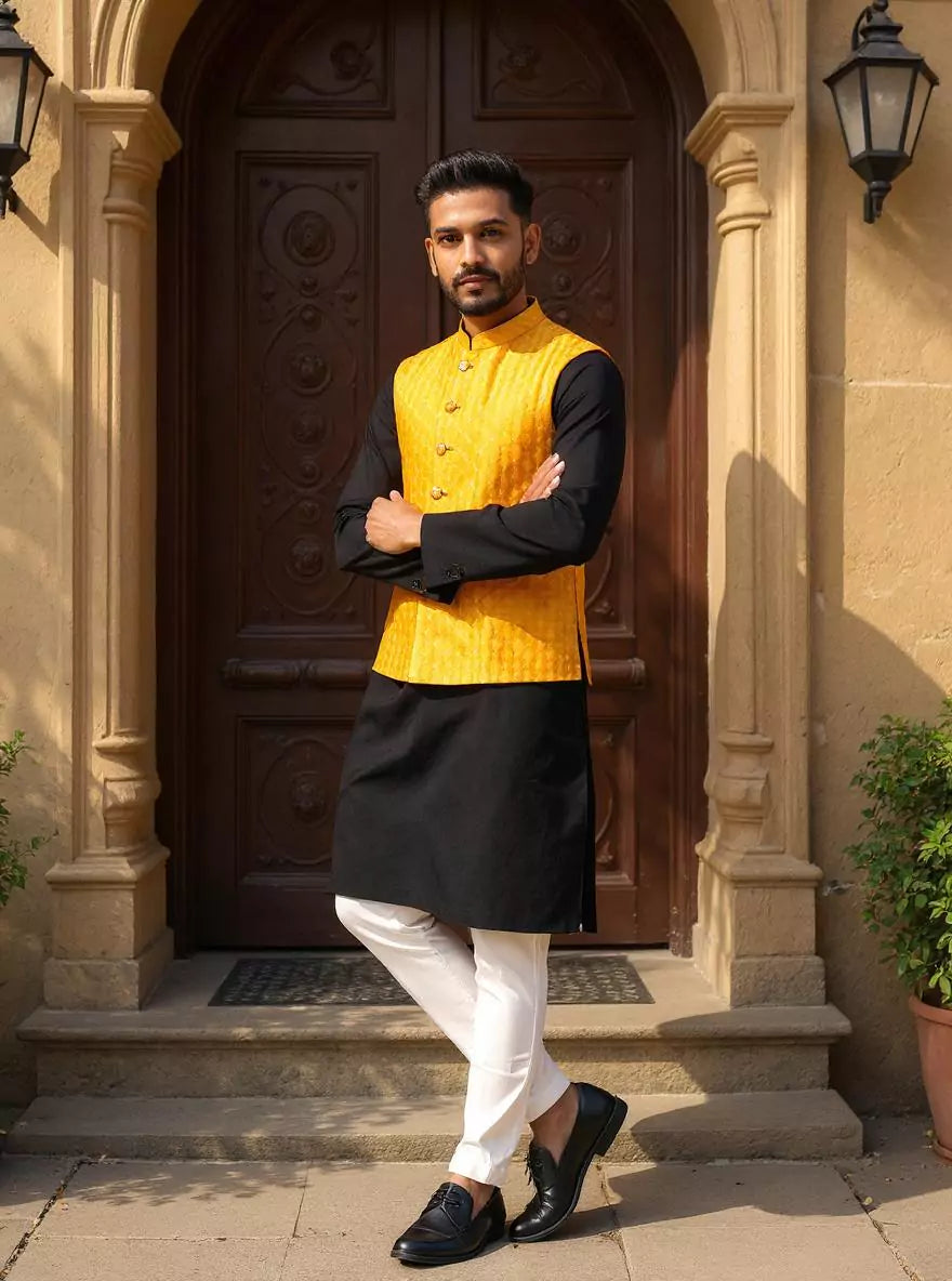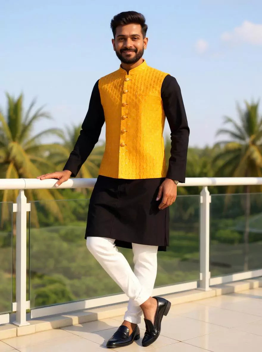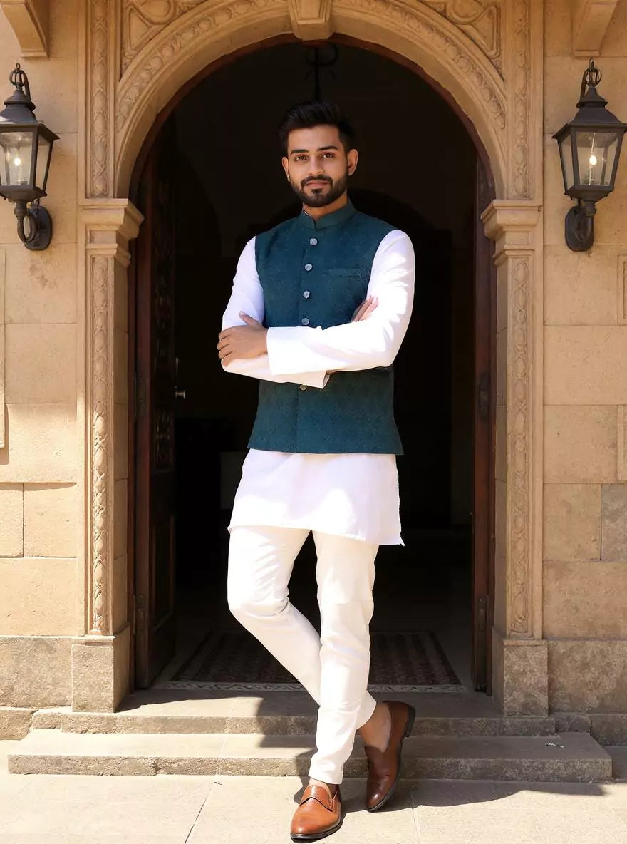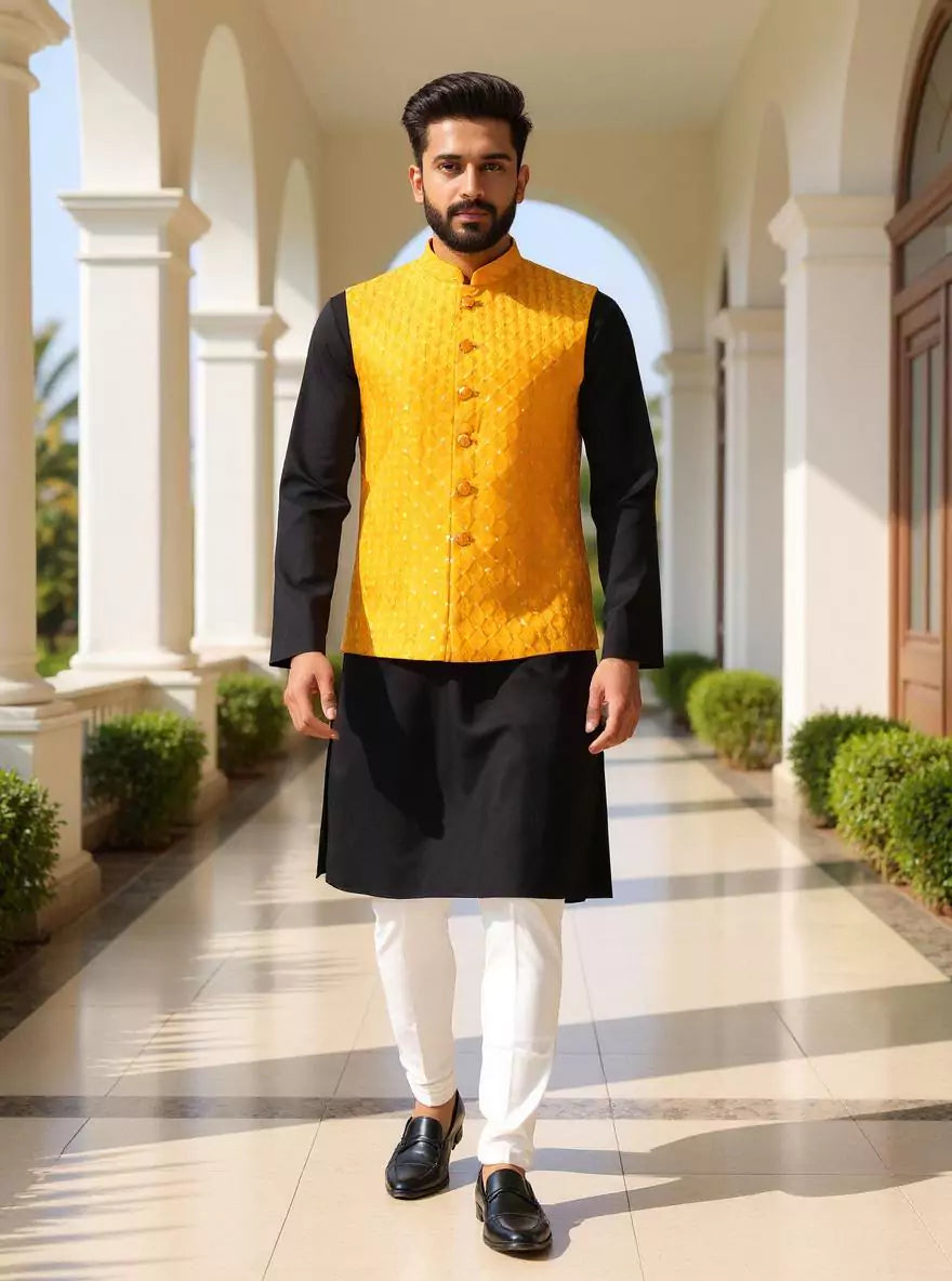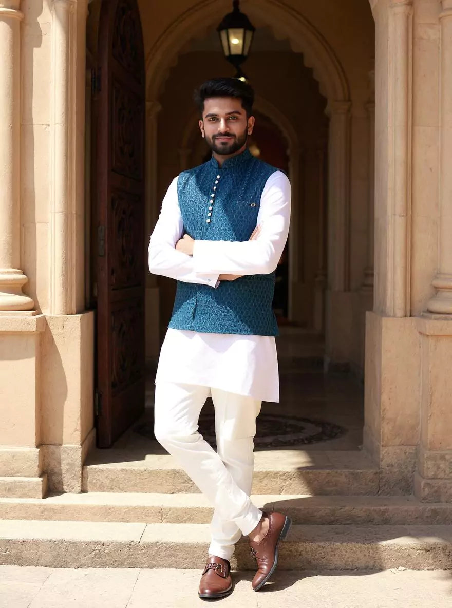 Captivating Rama Self Woven Jacquard Waist Coat for Men