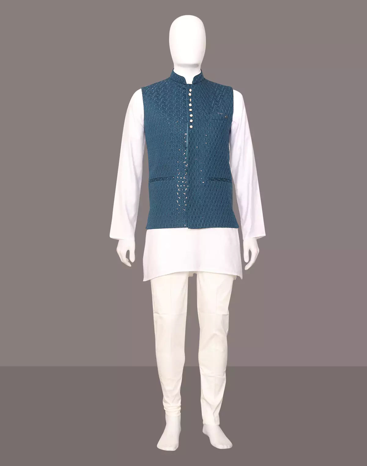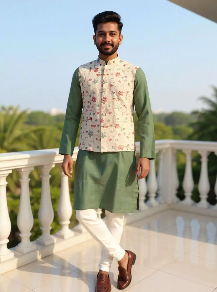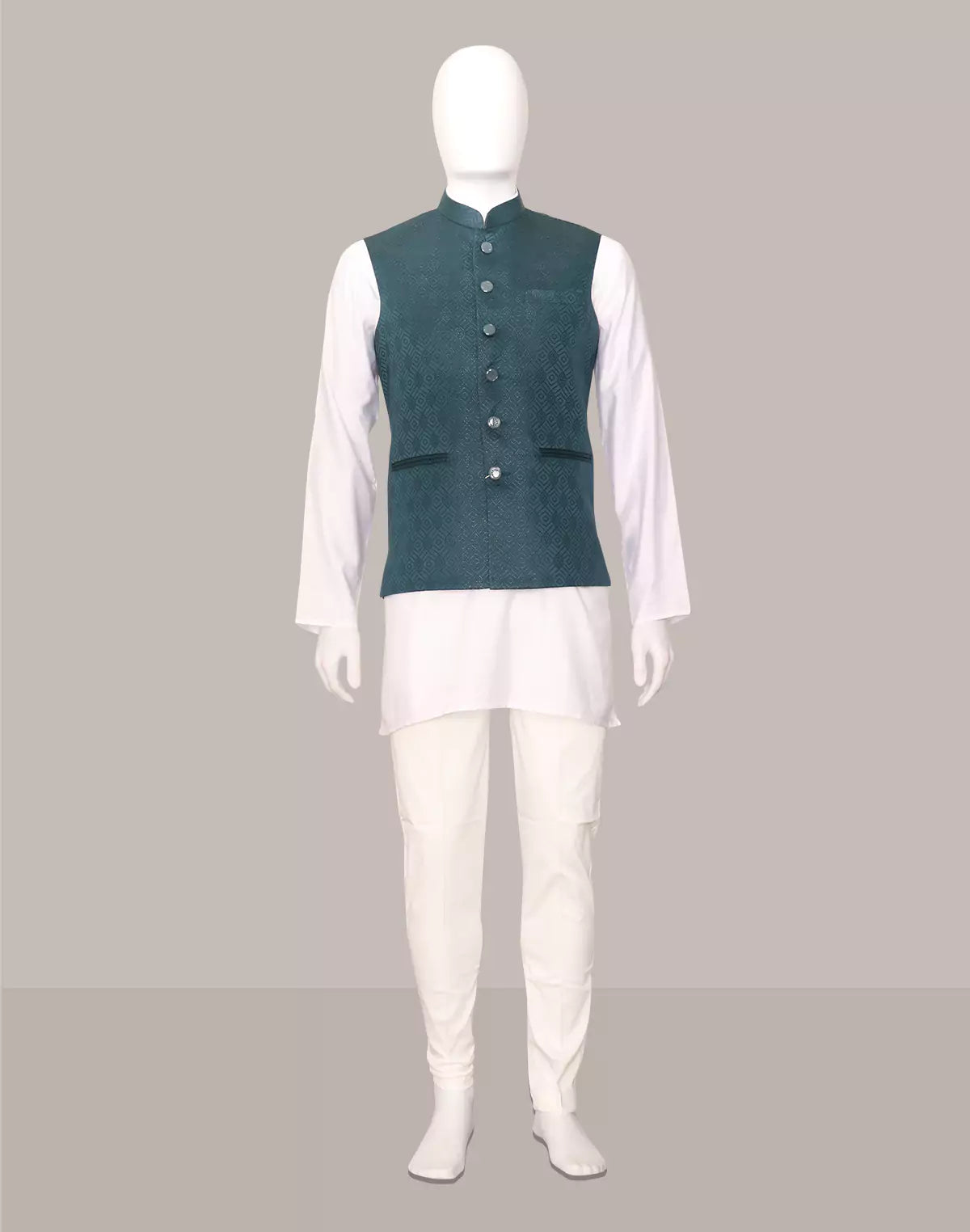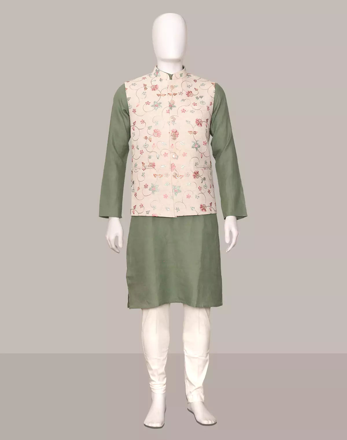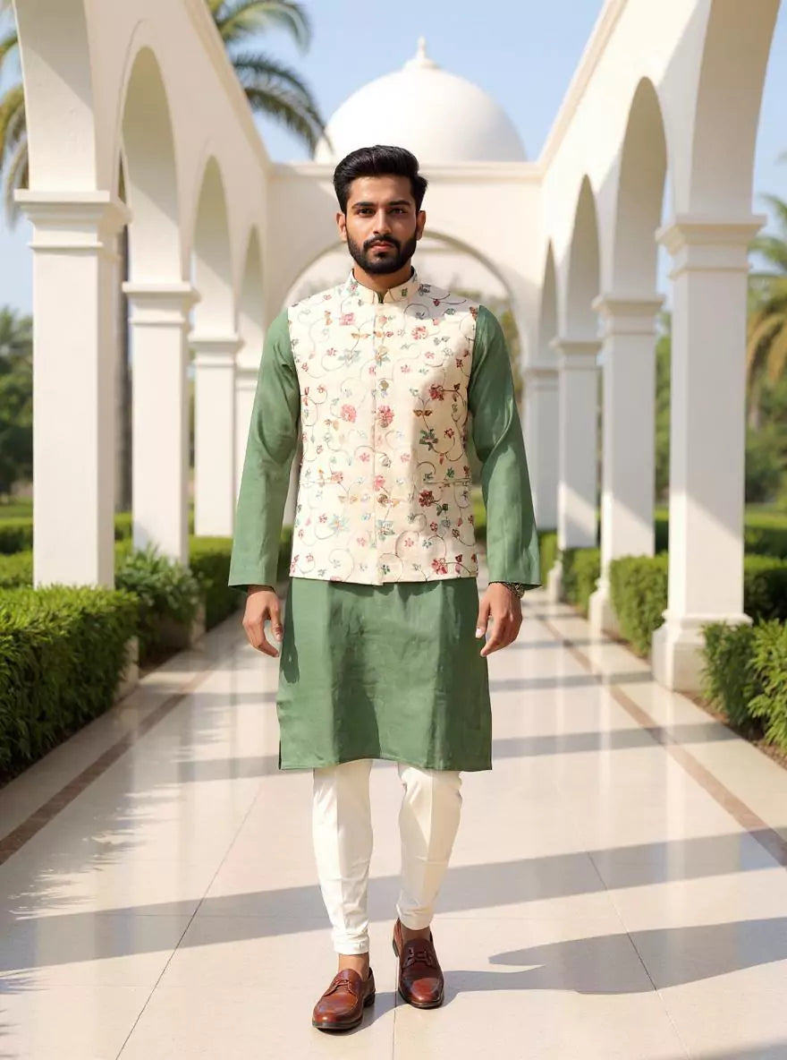 Mehendi Self Design Lucknowi Chikankari work Waist Coat