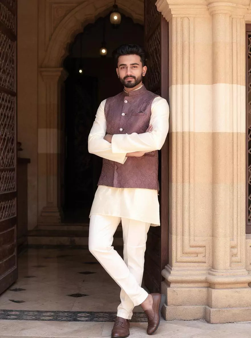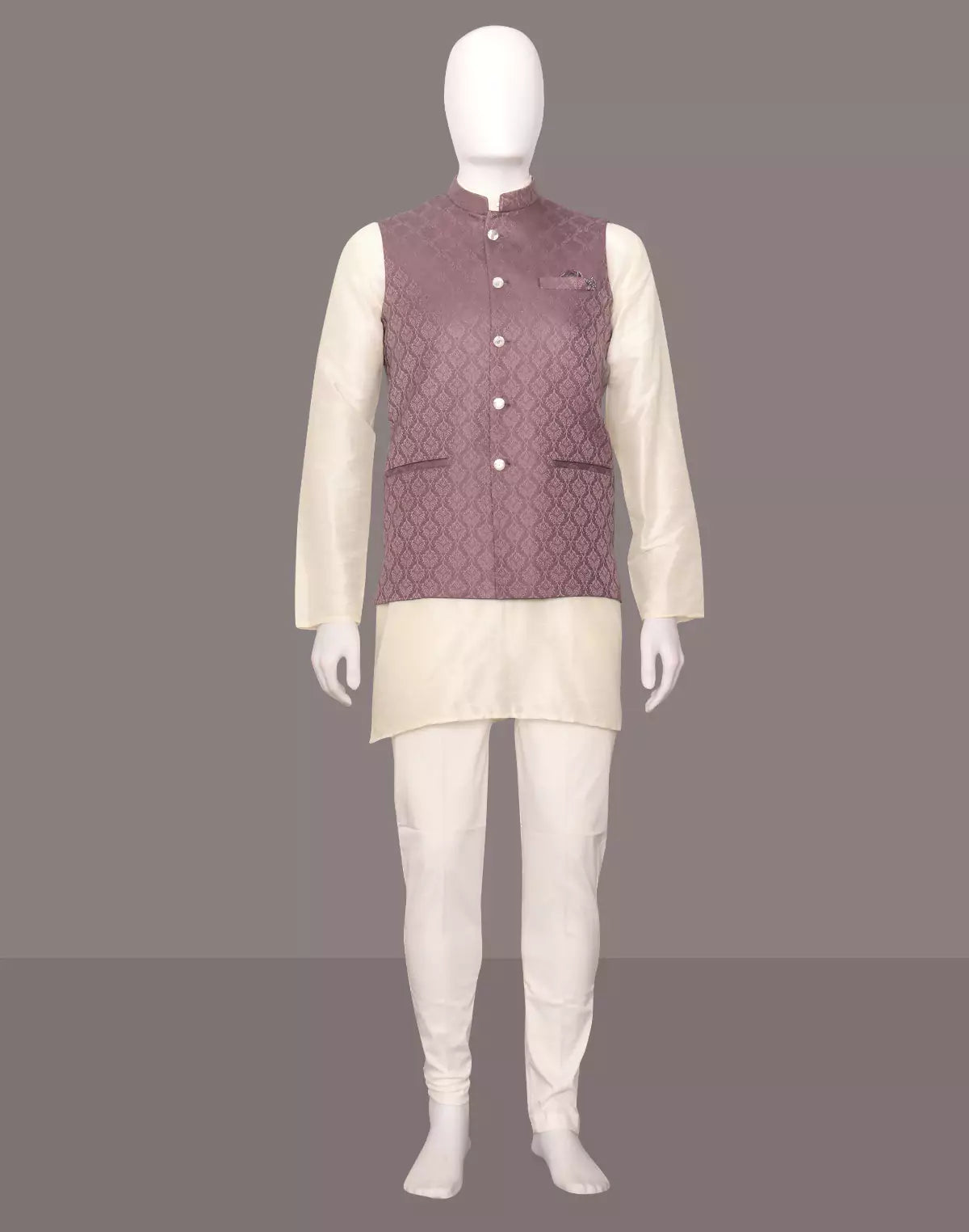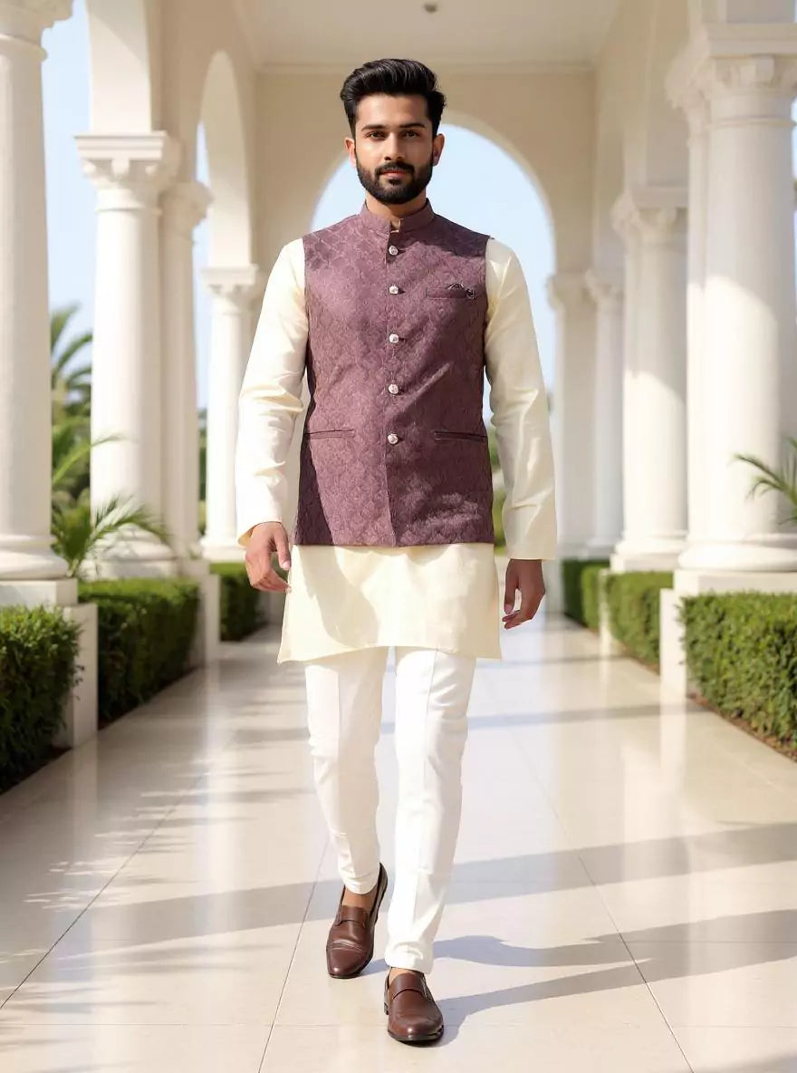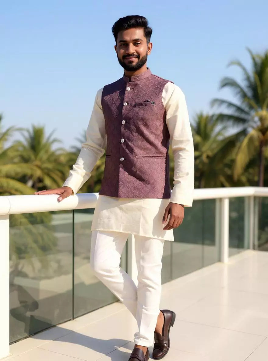 Dark Onion Self Brocade Design Jacquard Waist Coat
