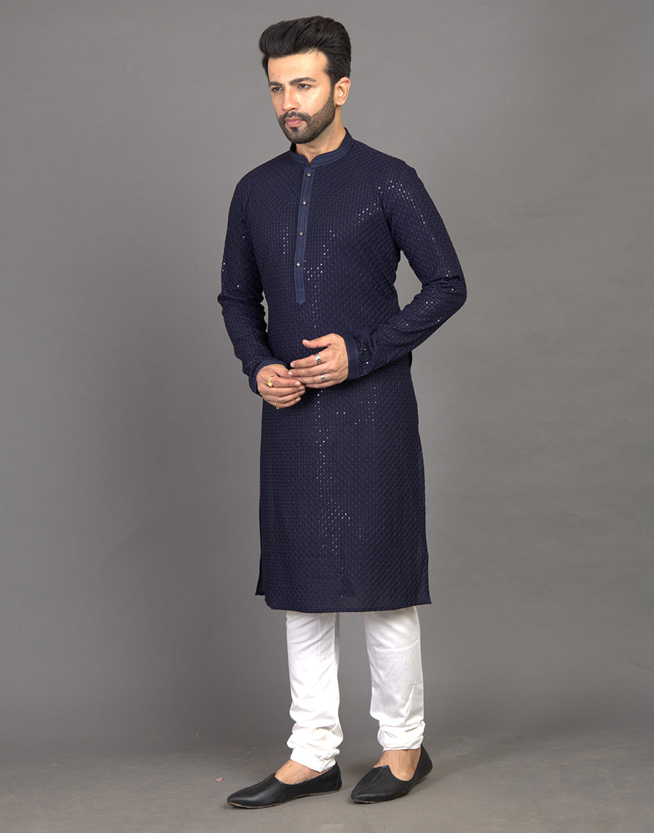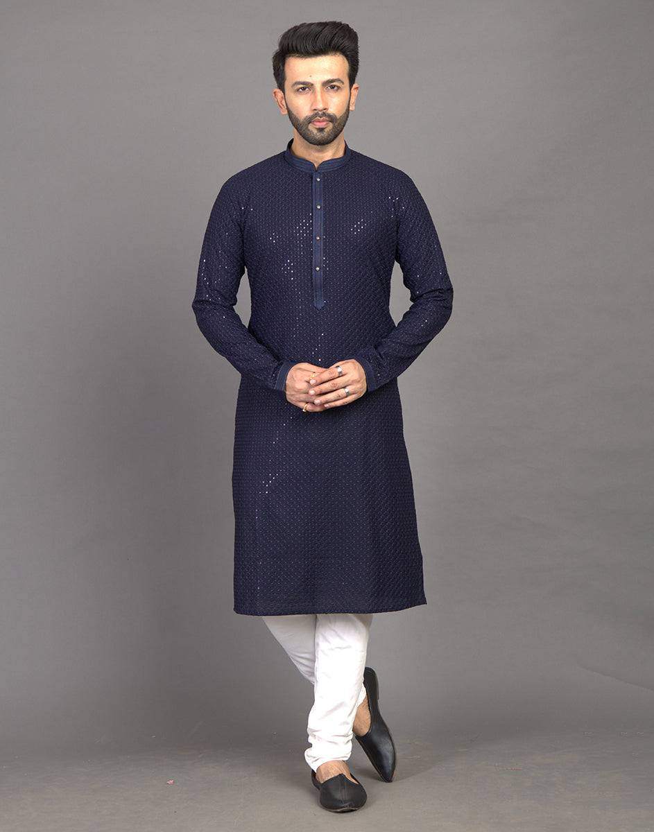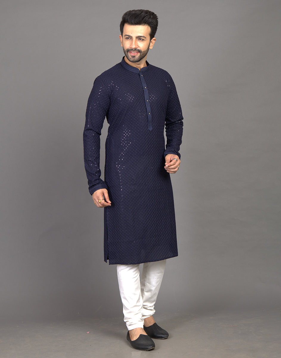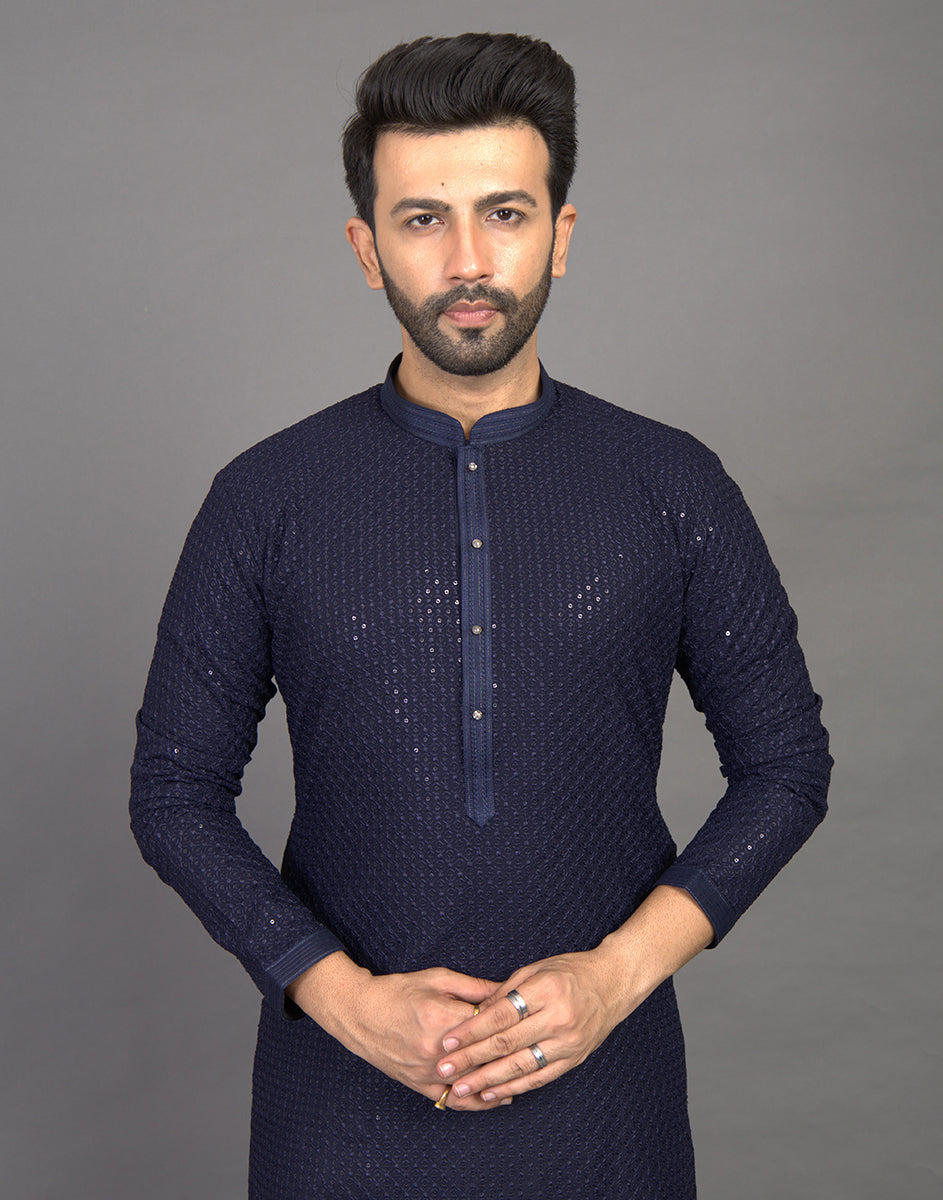 All Over Black Self Highlighted Seqence work Party Wear Kurta Pajama