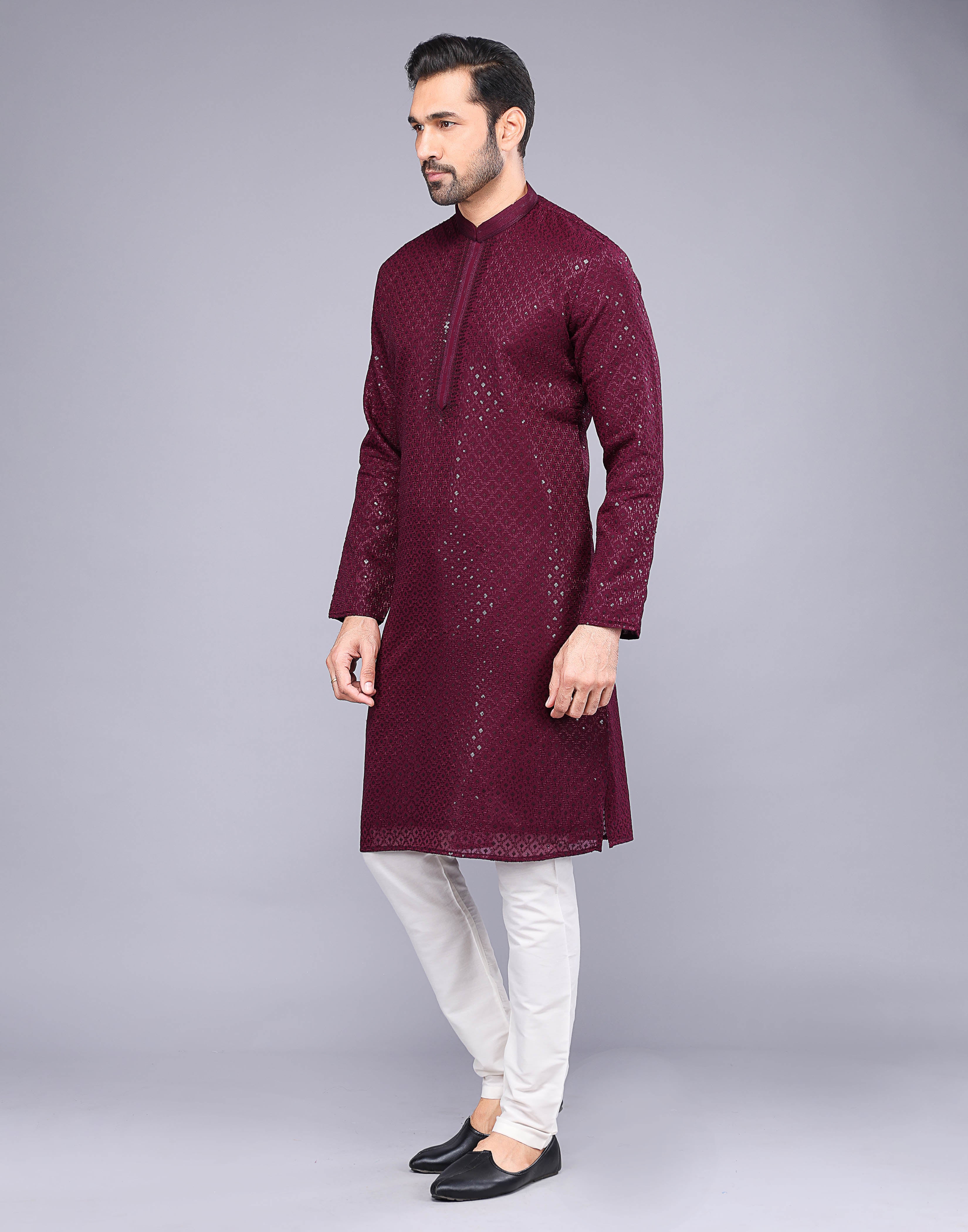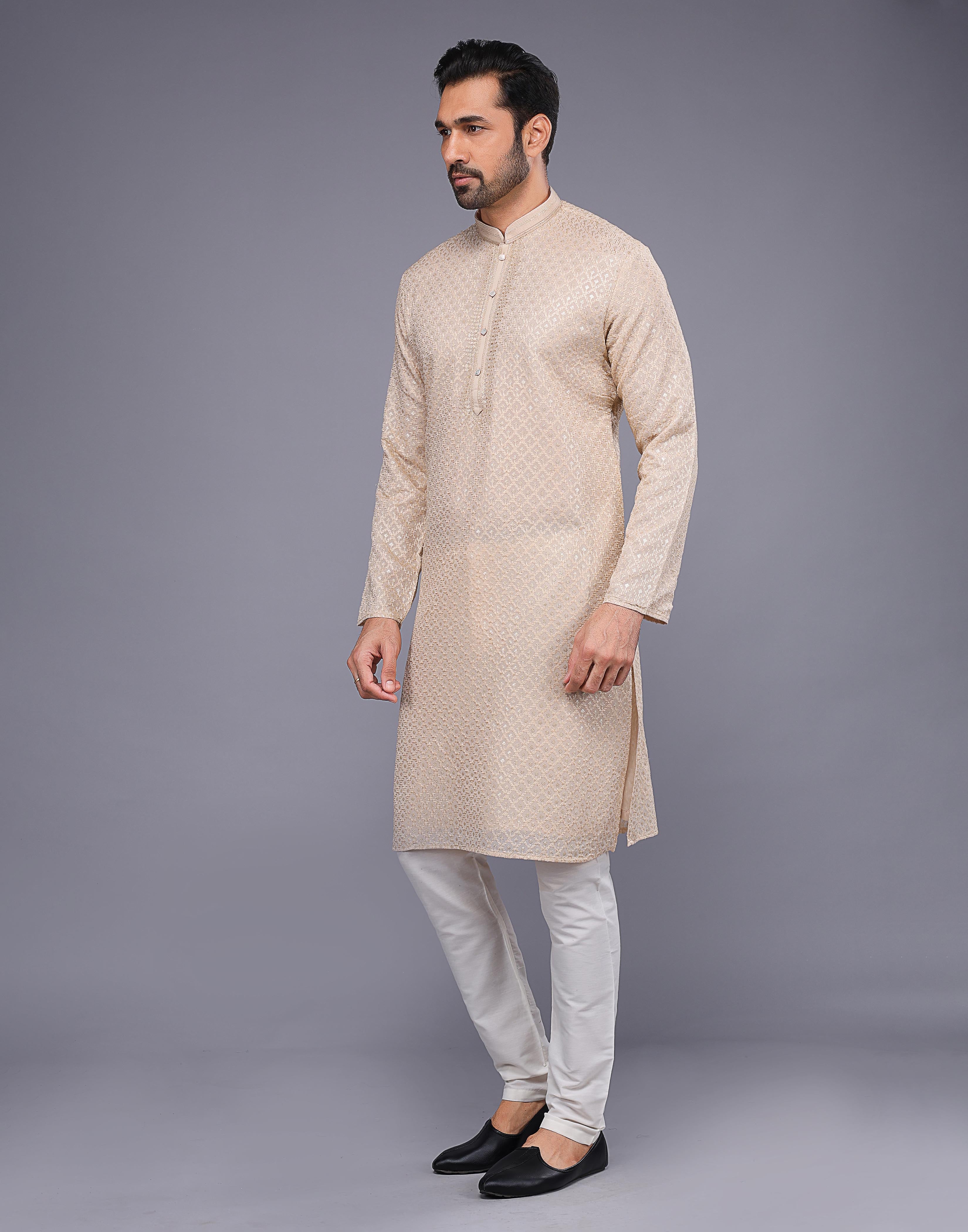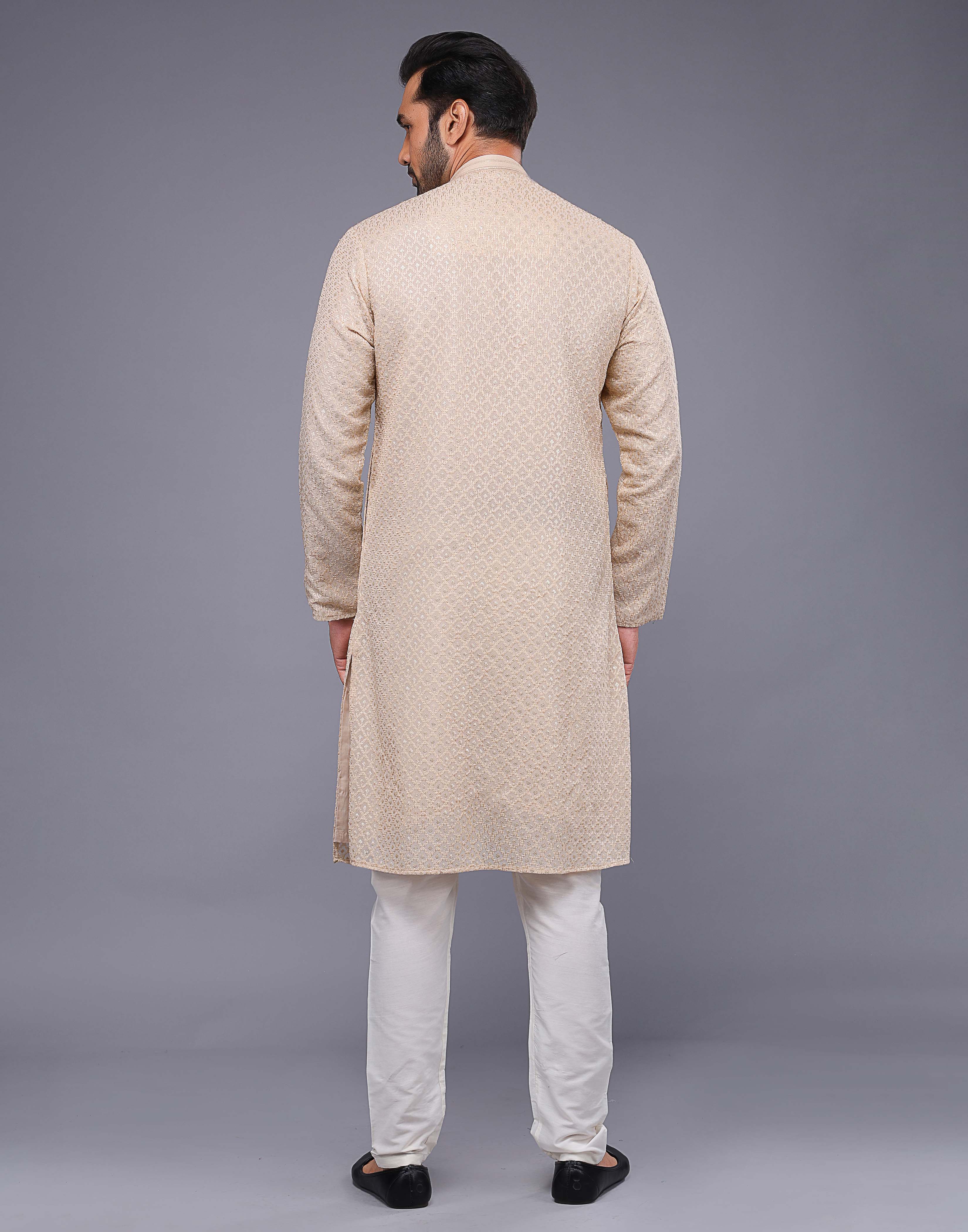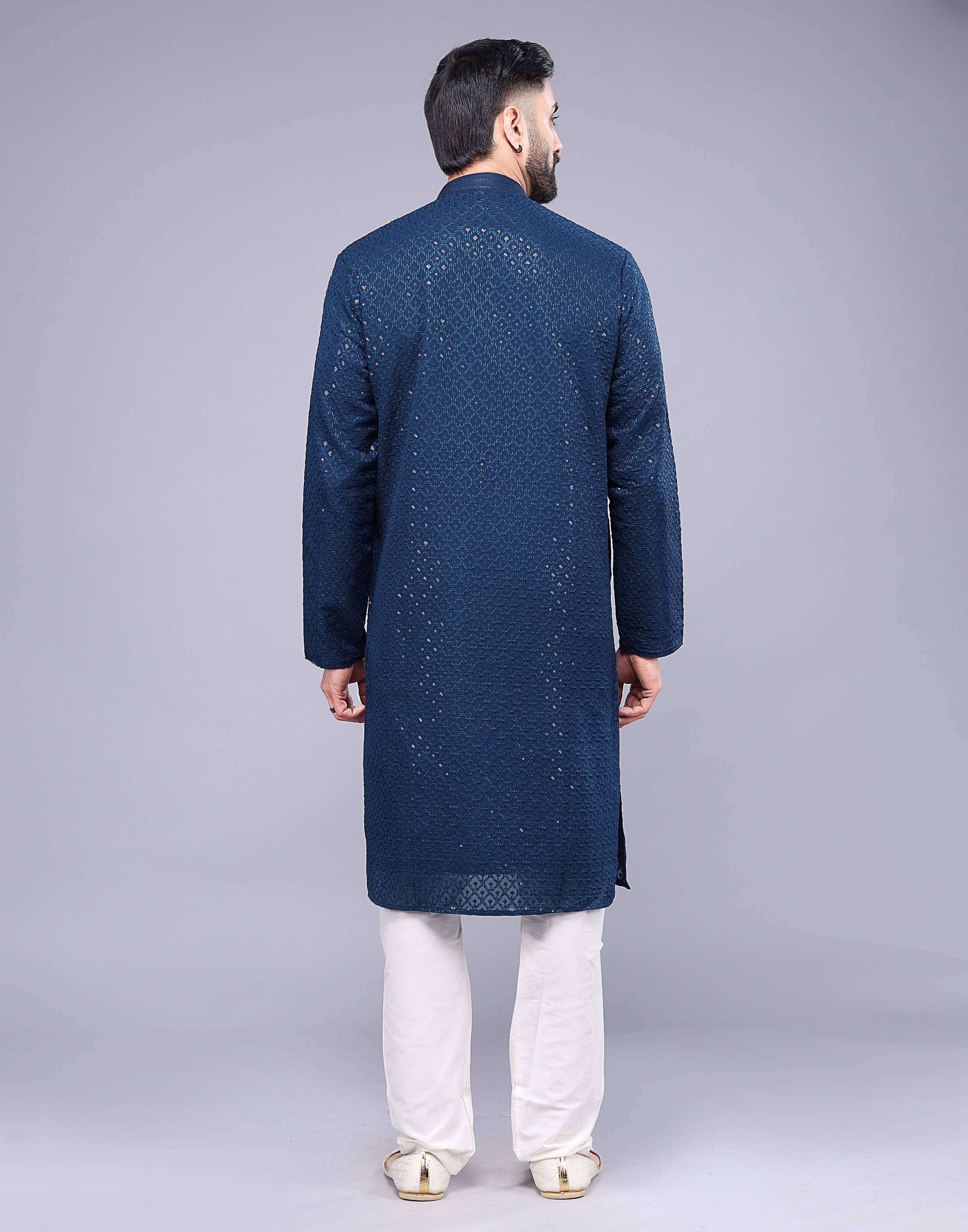 The kurta pyjama is skillfully adorned with beautiful embroidery and Thread Work, making it a luxurious and exciting outfit to wear.