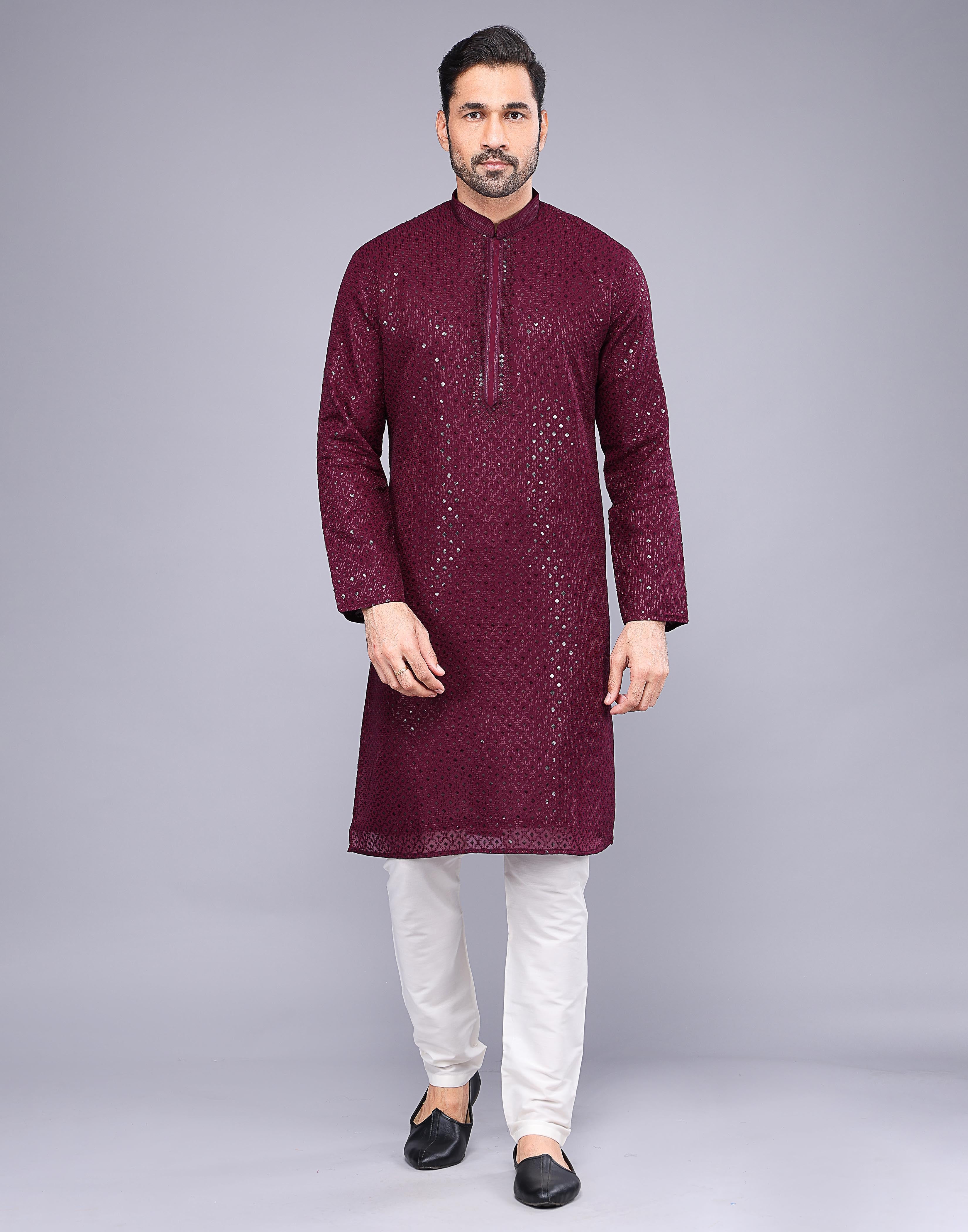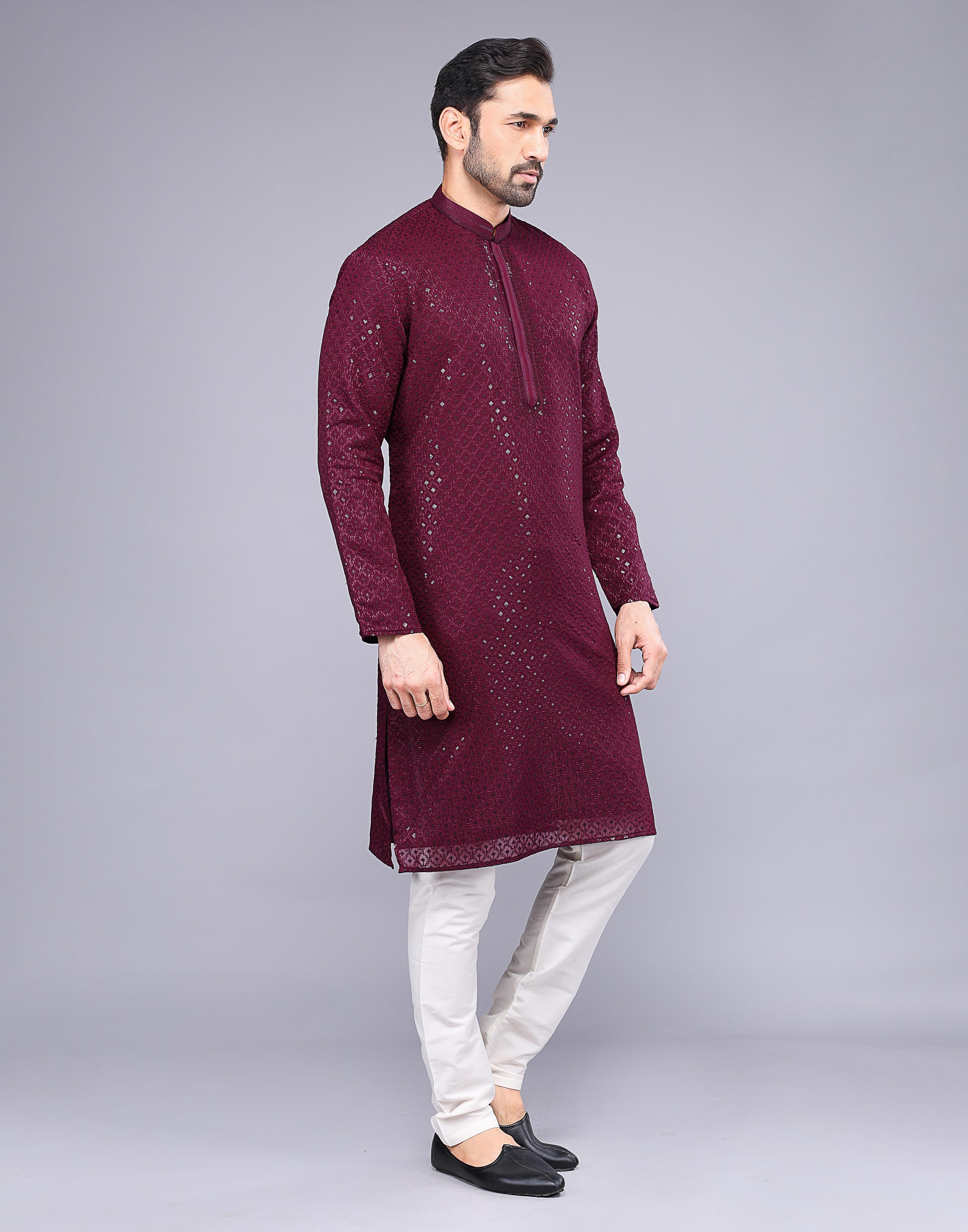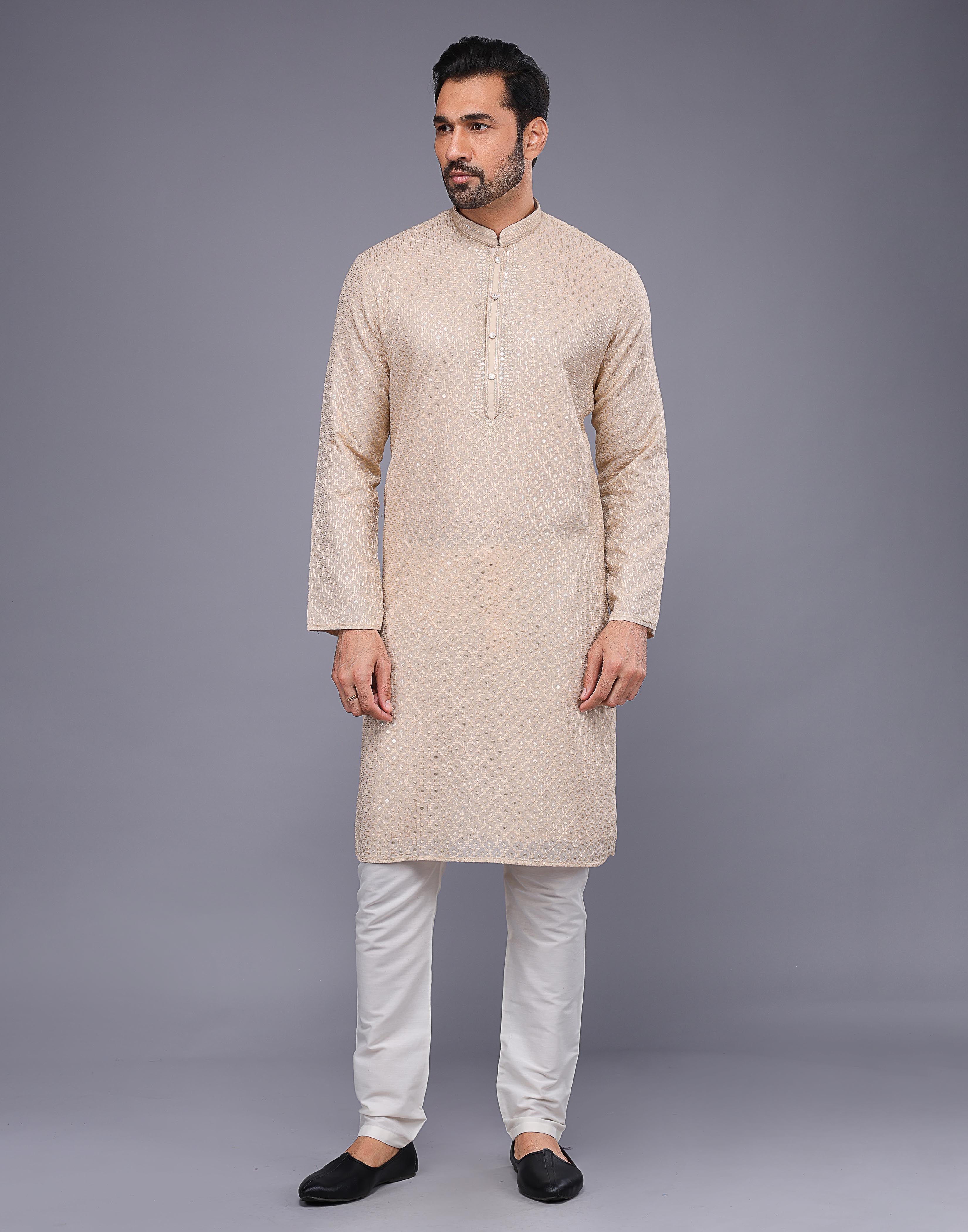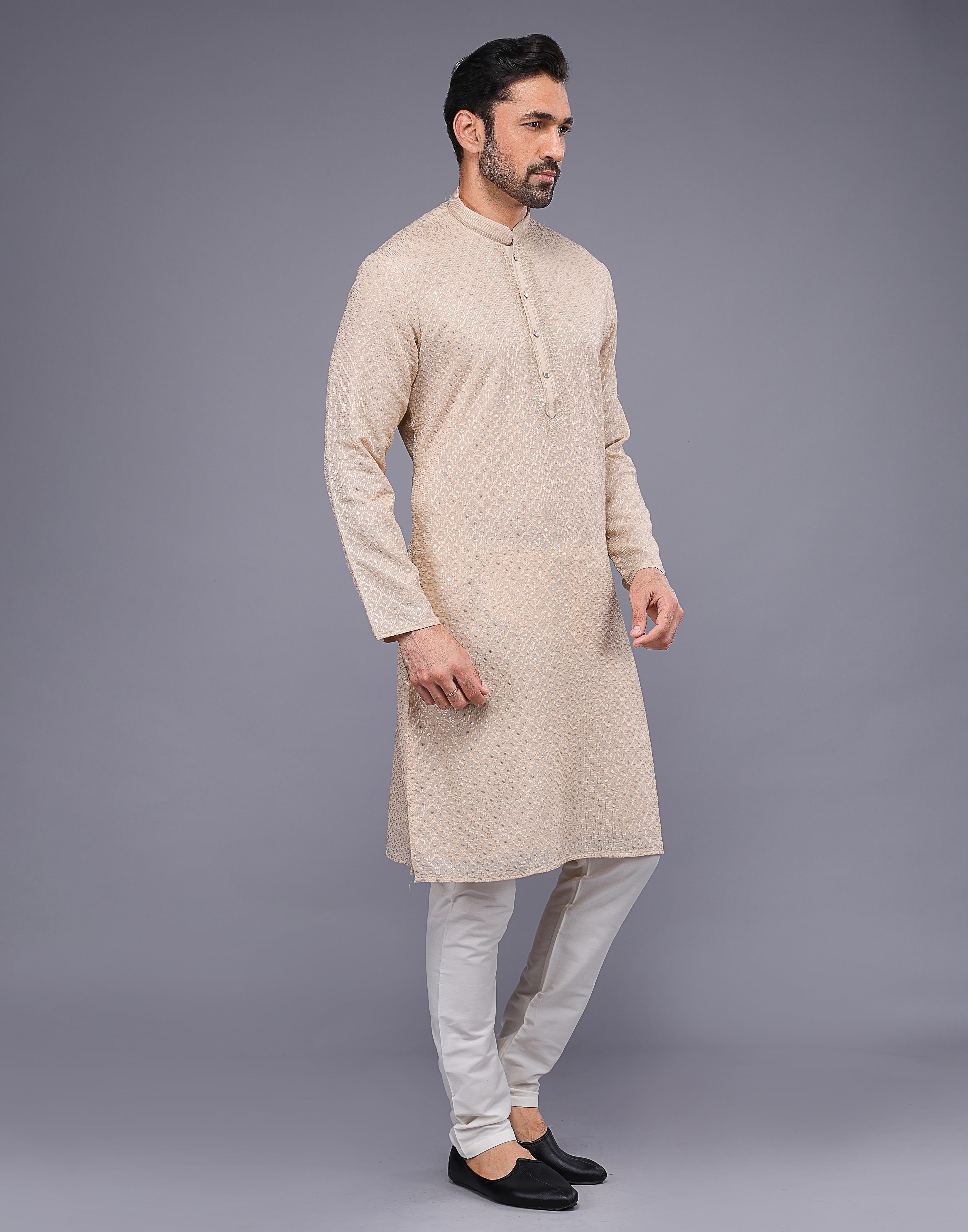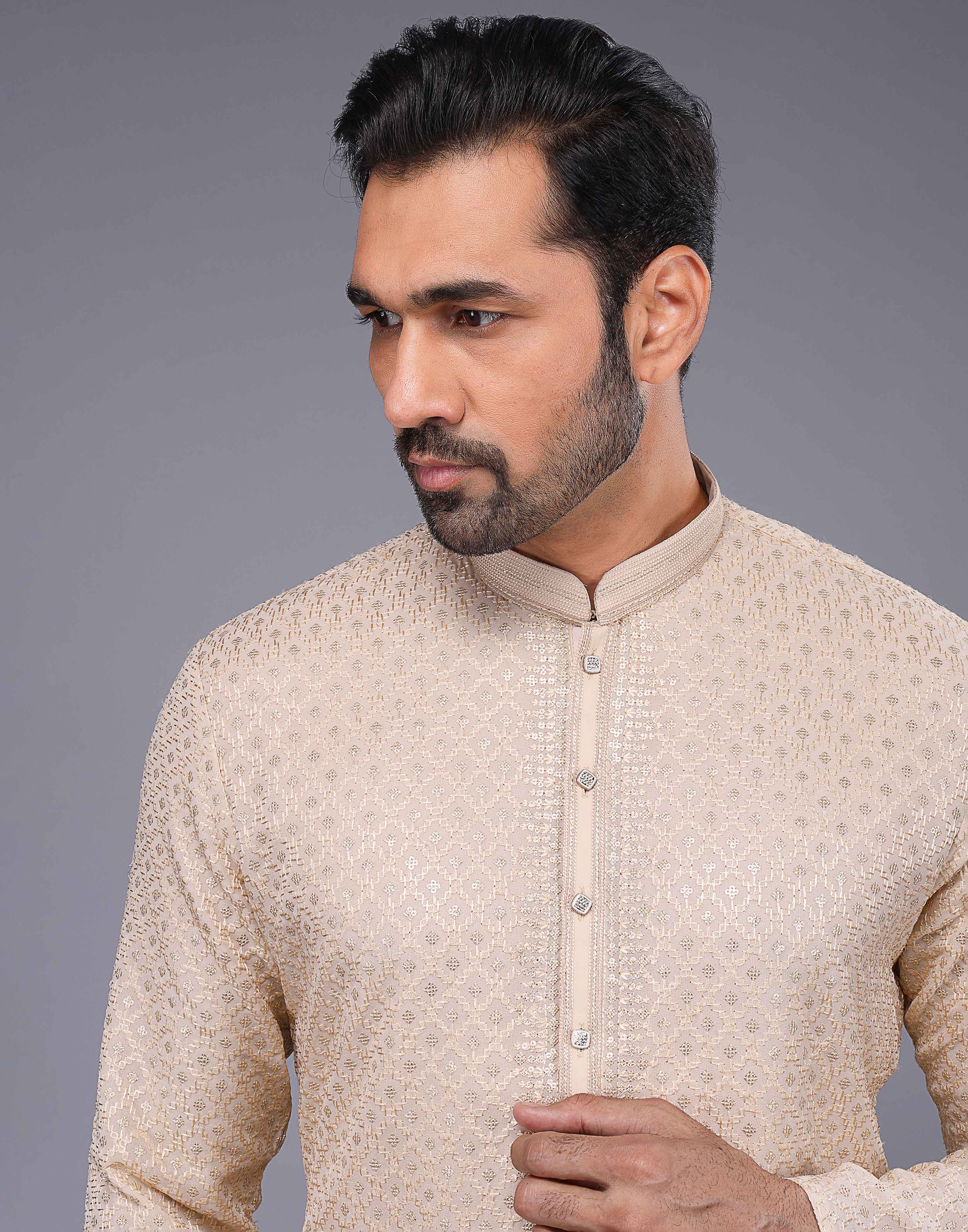 The kurta pyjama is skillfully adorned with beautiful embroidery and Thread Work, making it a luxurious and exciting outfit to wear.