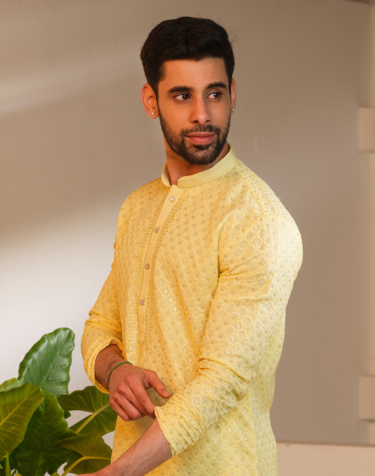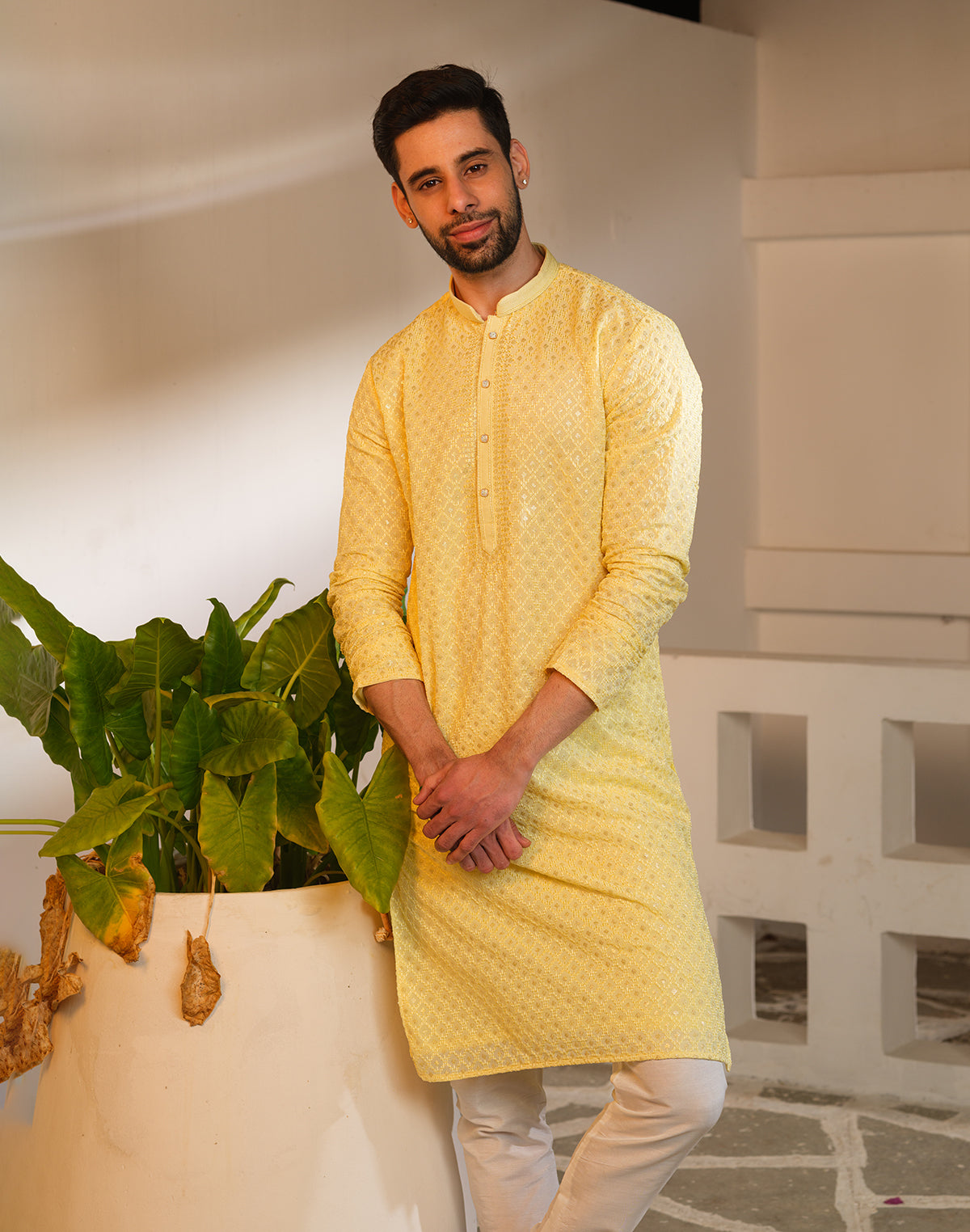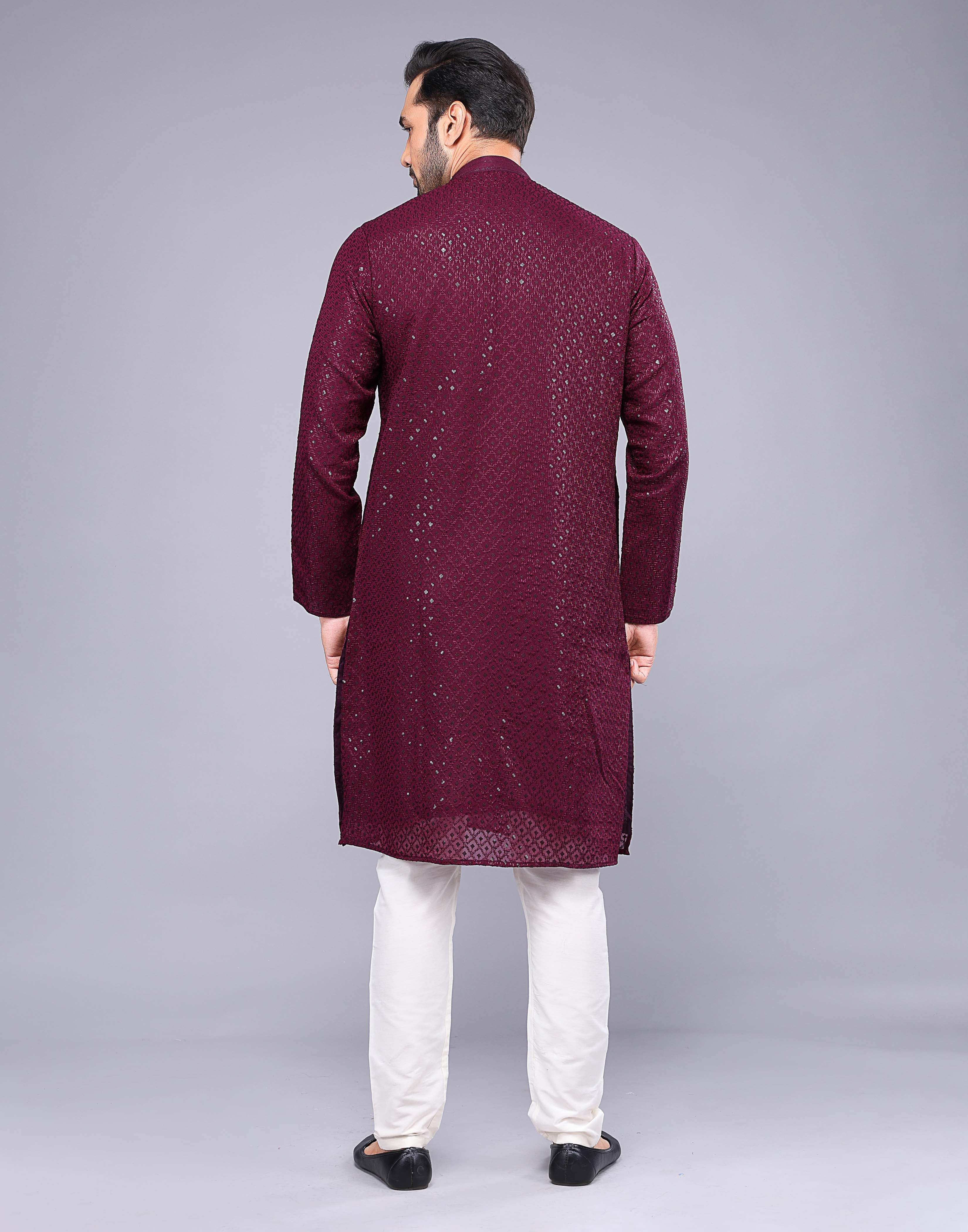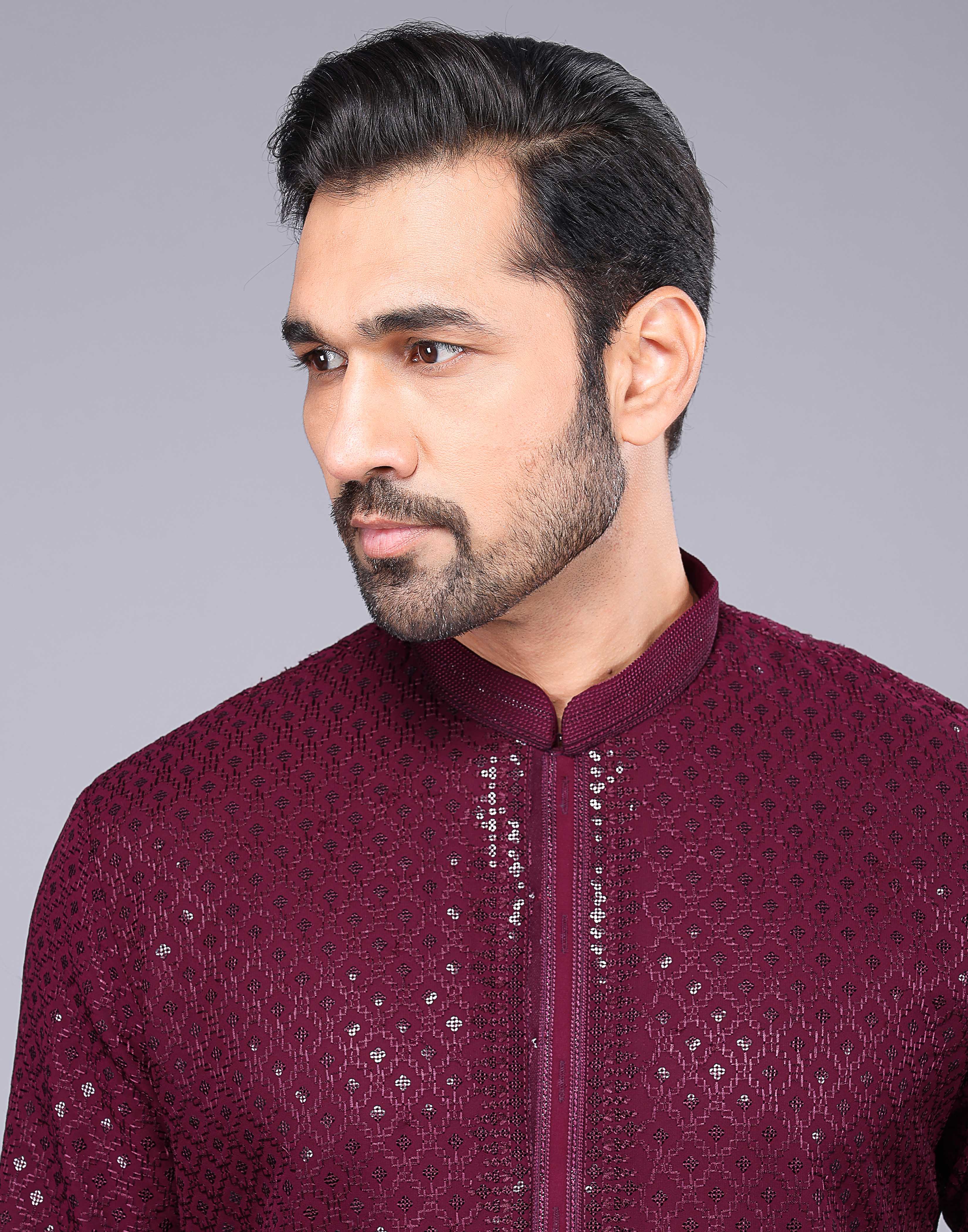 The kurta pyjama is skillfully adorned with beautiful embroidery and Thread Work, making it a luxurious and exciting outfit to wear.