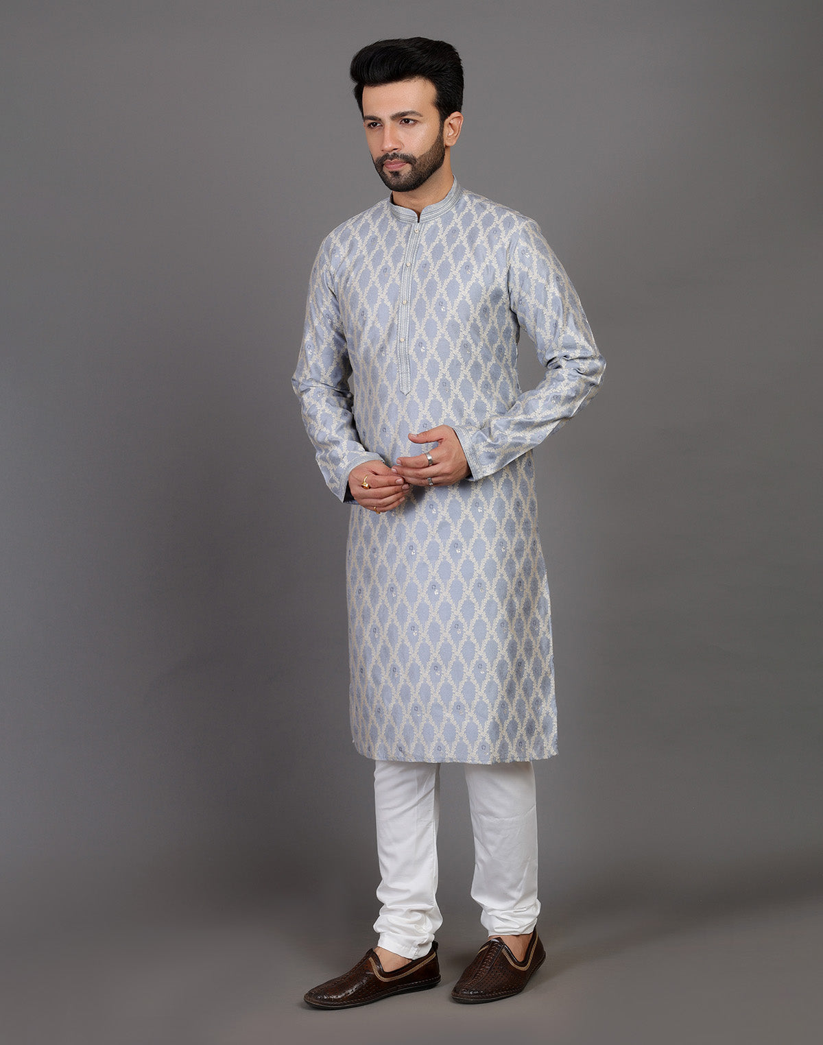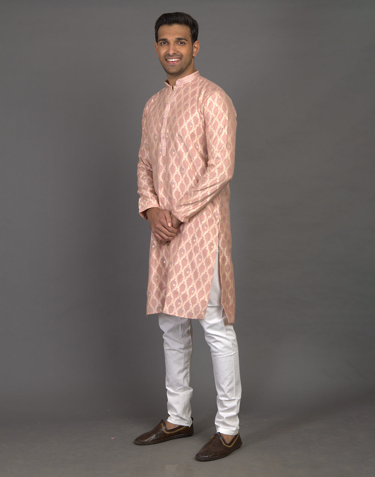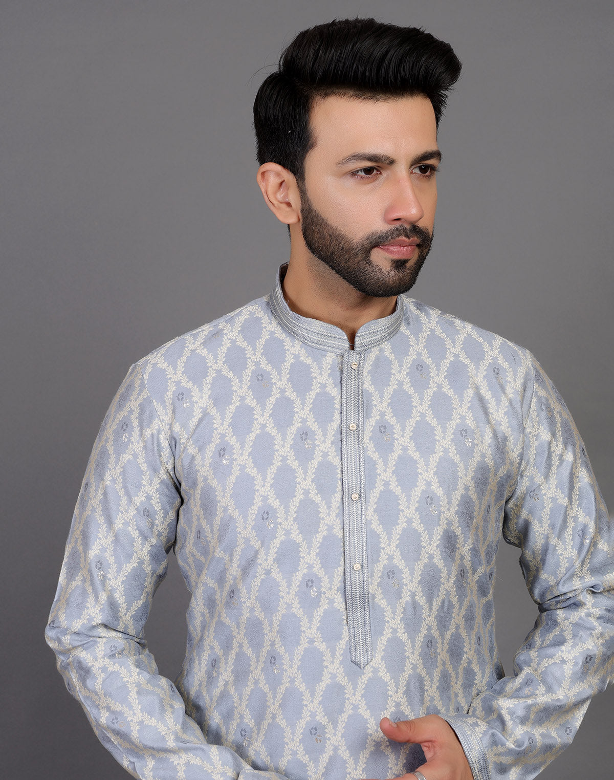 All Over Floral Weaving work Elegant Kurta Pyjama Set