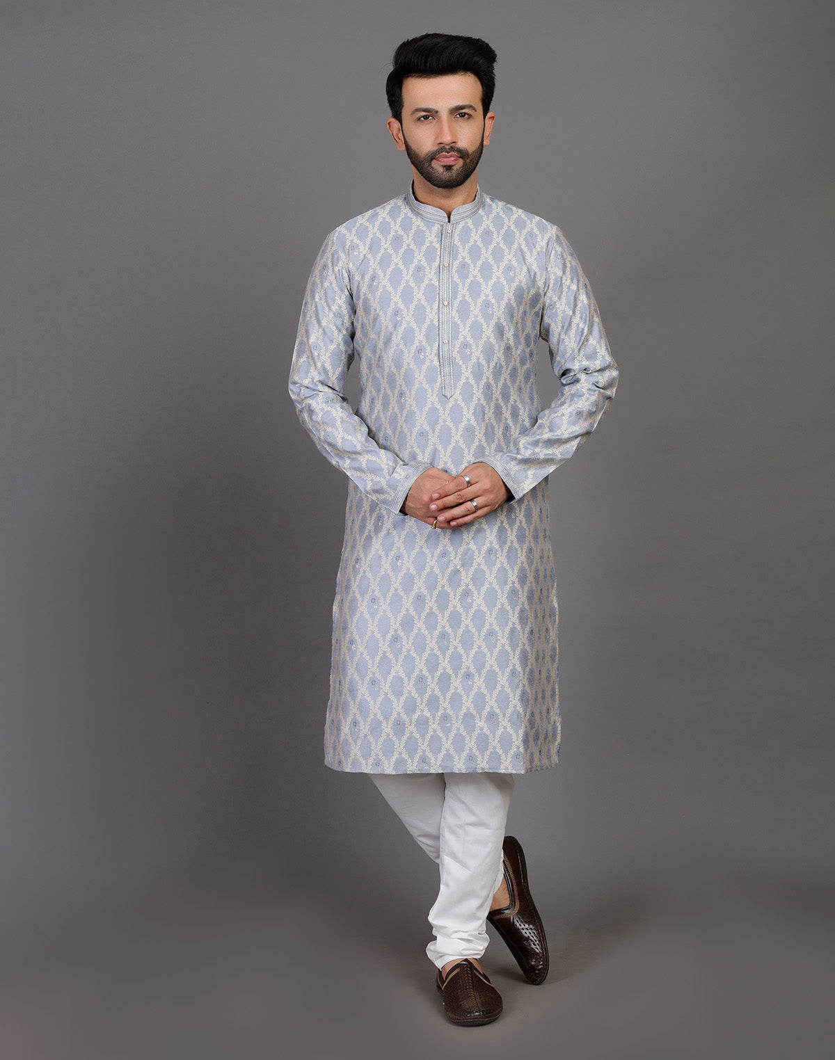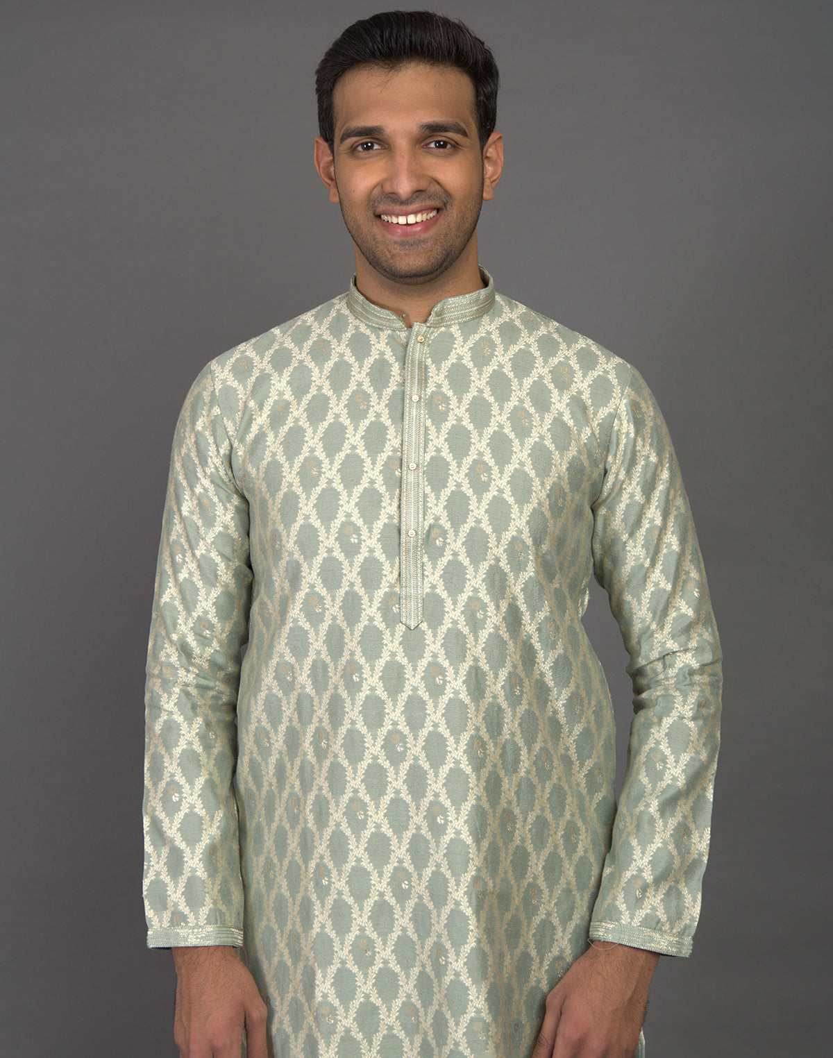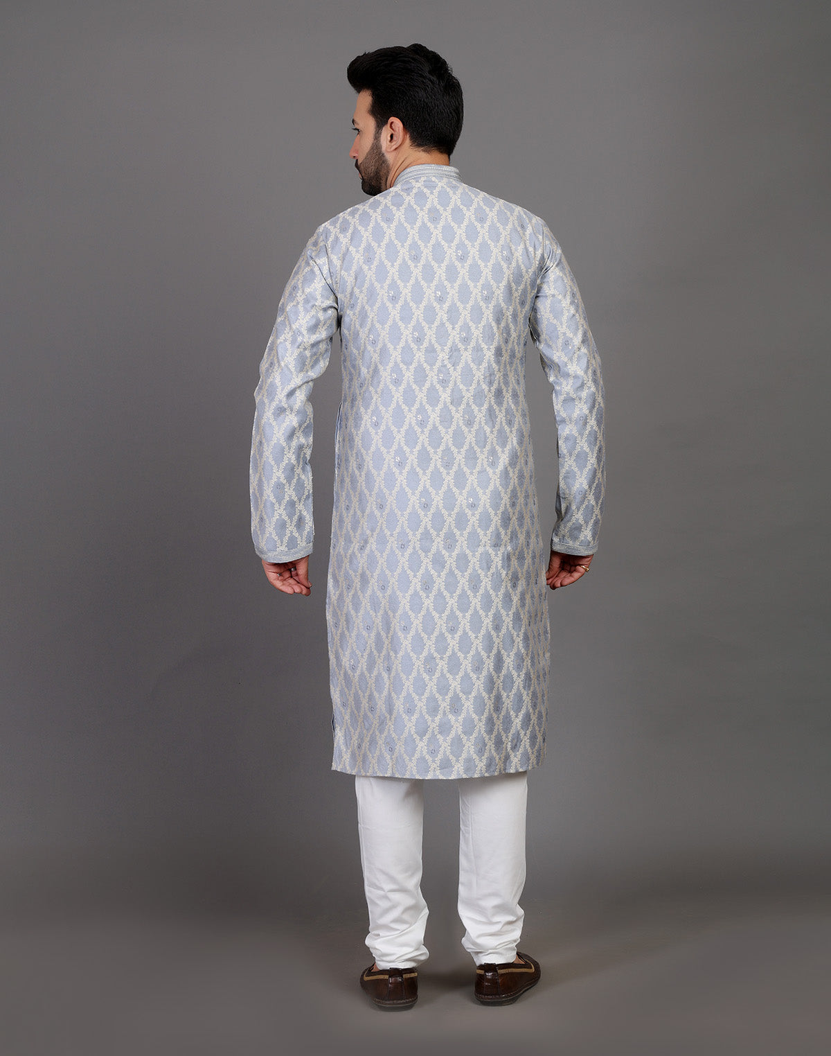 All Over Floral Weaving work Elegant Kurta Pyjama Set