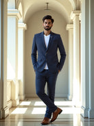 Graceful Self Checks Suede and Giza Cotton Blazer blends sophisticated design with premium materials for a refined look. The self-check pattern adds a modern twist, while the suede and Giza cotton ensure a soft, breathable fit. Ideal for both professional and casual settings, it offers timeless style and comfort.