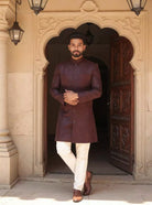 Wine Imperial Patterned Jacquard Semi-Indo Set